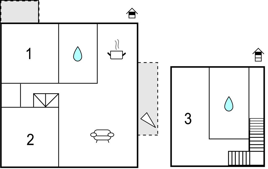 Opholdsstue/køkken - 2 Sovepladser. (Sofa, madras eller lignende).
