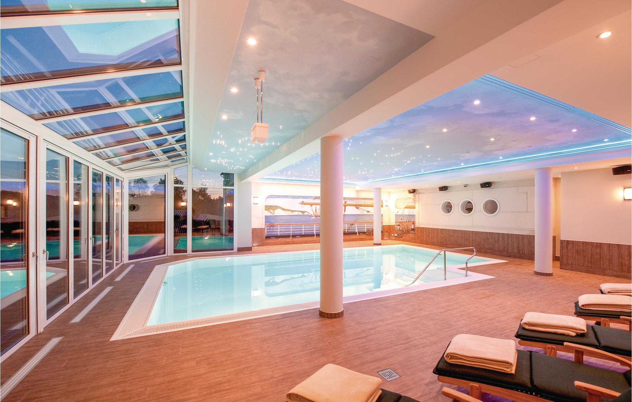 Denne hyggeligt indrettede moderne ferielejlighed ligger i et hus direkte ved Golfpark Strelasund. I kan selvfølgeligt gøre brug af golfparkens tilbud mod gebyr som golfkurser, brug af svømmehallen og wellness, sauna og massage. I golfhotellets restaurant kan I lade jer forkæle på den flotte terrasse. Alt efter jeres ønsker kan I bestille flere ydelser fra hotellet f.eks. morgenmad, så I ikke behøves undvære den mindste komfort. Lad jer endelig vejlede.