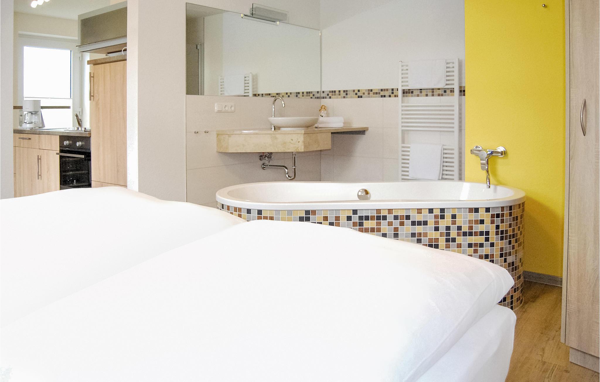 Denne bolig er ca. 30 minutter væk fra Østersøens strand, og der mangler ingen muligheder for afslapning eller sportslig aktivitet. Her kan I ikke kun spille golf, men også gå tur i de omgivende skove, tage en tur på de cykler, der kan lånes her, eller bruge tilbuddene i wellnessområdet på hotellet ved siden af (svømmebassin, sauna, dampbad, forskellige former for massage). Også en restaurant hører til komplekset, hvor I kan lade jer forkæle på en terrasse udenfor ved solnedgang.