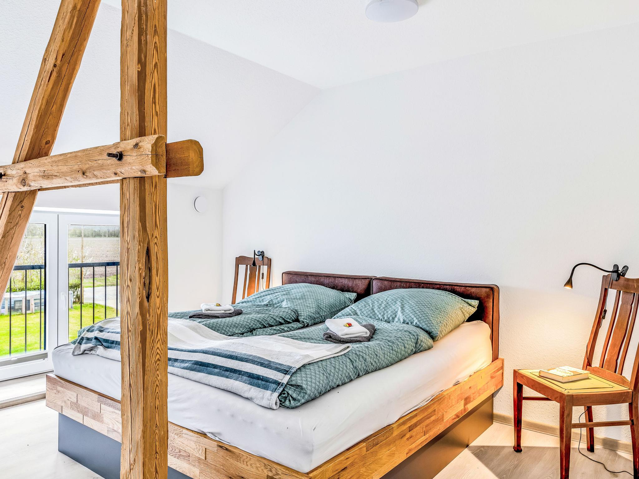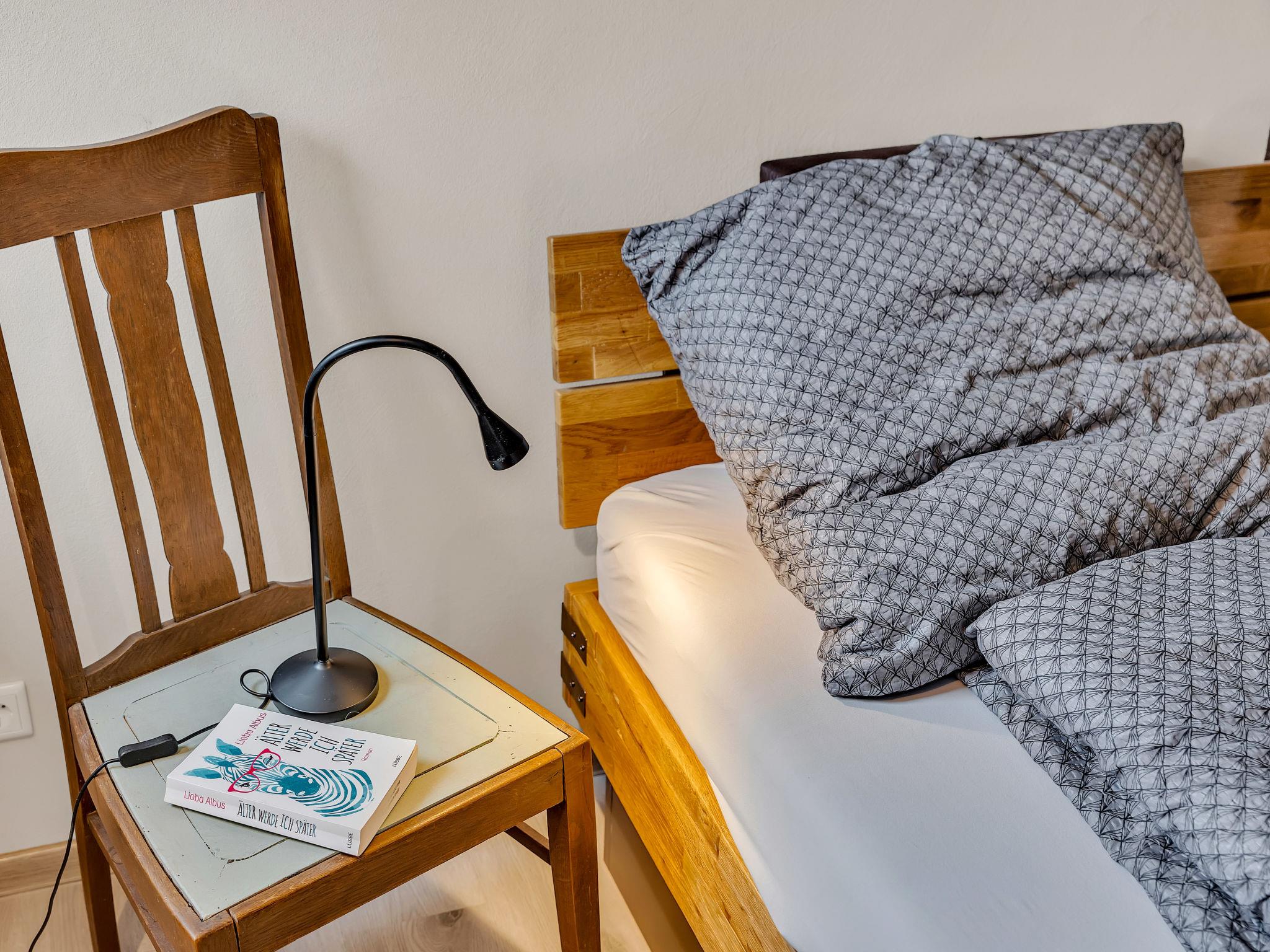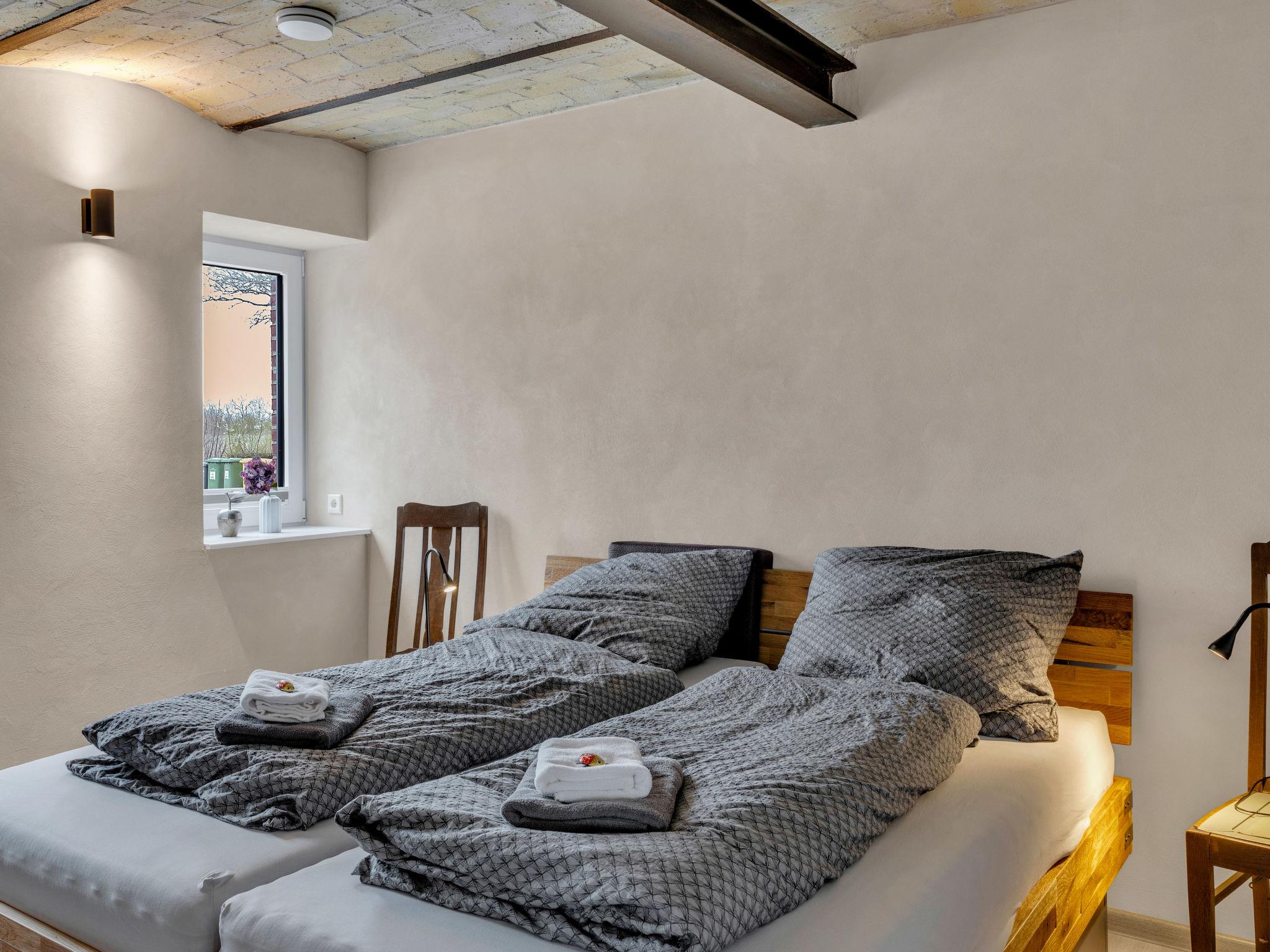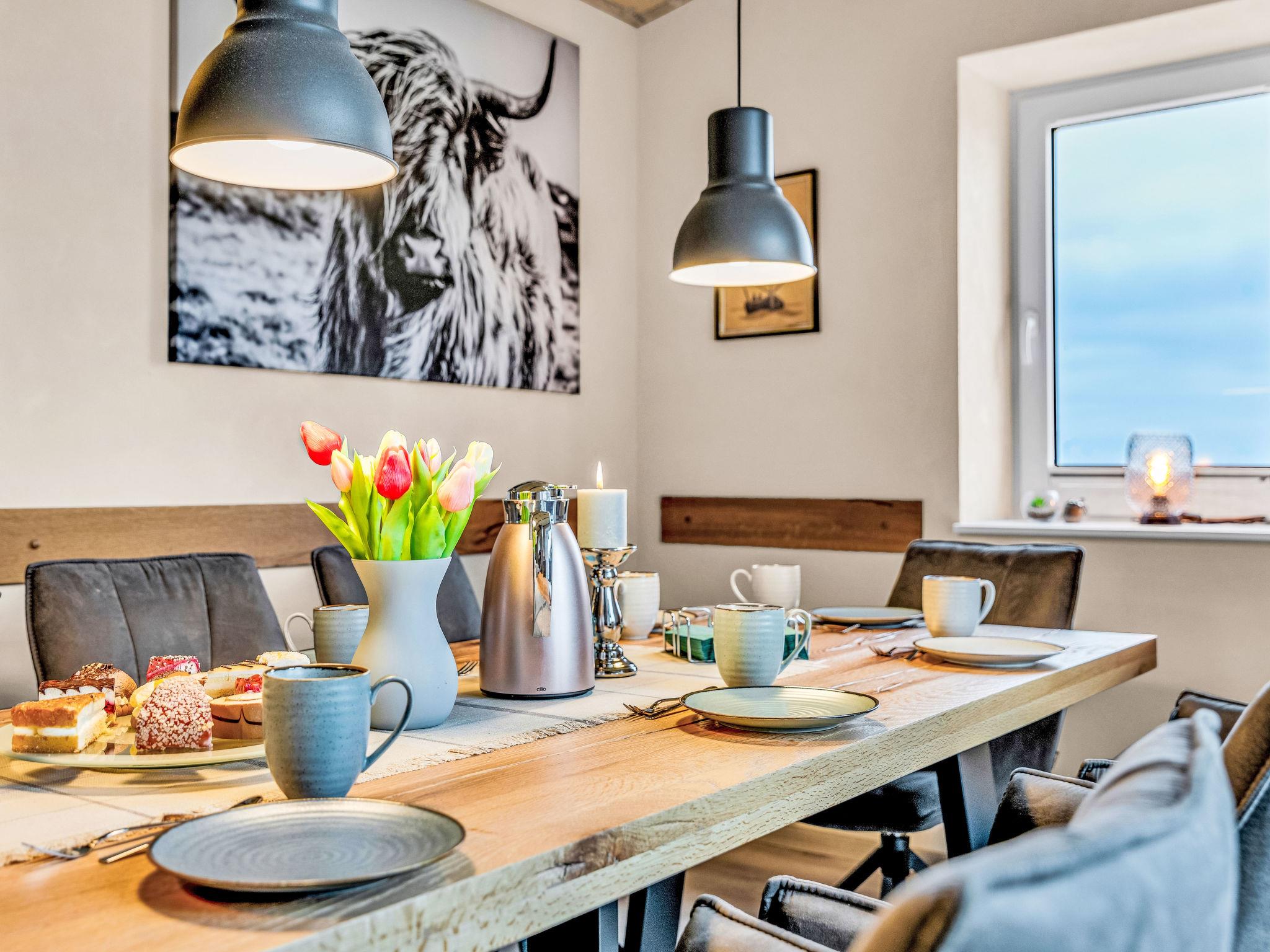 6-room apartment 150 m2 on 2 levels. Spacious, modern and tasteful furnishings: large dining room with dining table and cable TV (flat screen). 2 rooms, each room with 1 double bed (180 cm, length 200 cm). Large, open kitchen (oven, dishwasher, 4 ceramic glass hob hotplates, toaster, kettle, electric coffee machine). Shower/WC. Wood heating. Solar power. Upper floor: large living/sleeping room with 1 double sofabed (180 cm, length 200 cm), cable TV (flat screen). 1 room with 1 double bed (180 cm, length 200 cm). 1 room with 2 beds (90 cm, length 200 cm). Shower/WC. Comfortable furnishings in the country house style. Small terrace. Terrace furniture, barbecue, deck chairs. Beautiful panoramic view of the countryside. Facilities: washing machine, dryer, sauna. Internet (WiFi, free). Please note: non-smokers only. Maximum 2 pets/ dogs allowed. Bookings accepted for holiday purposes only.