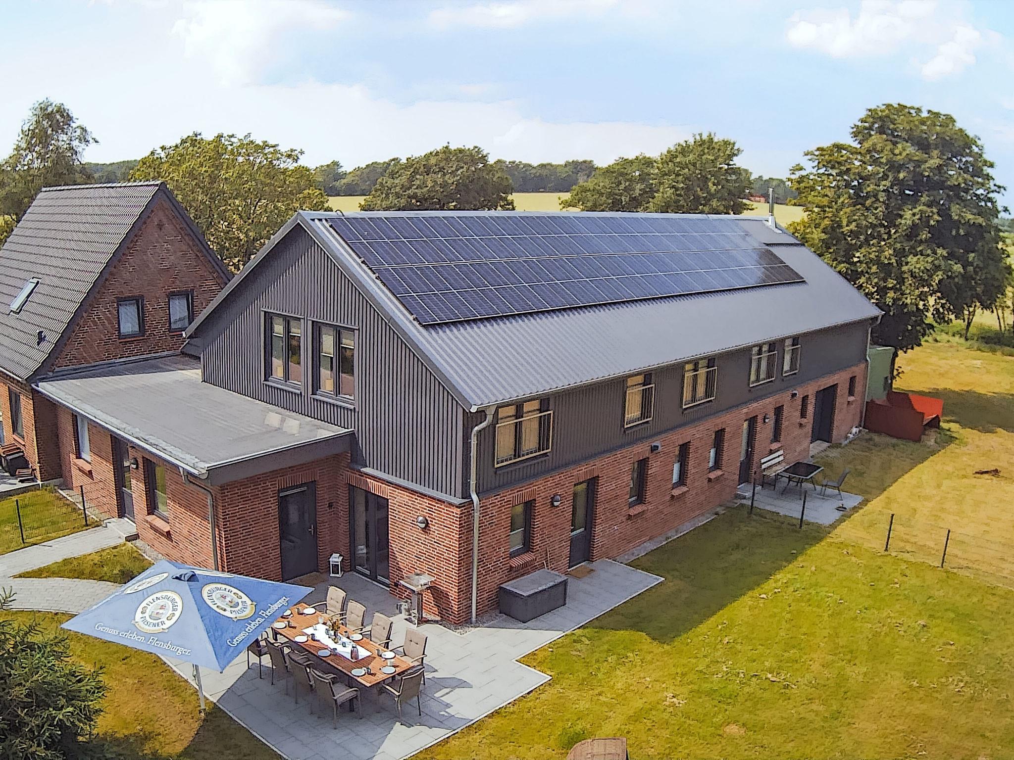 Large, cosy, comfortable cottage "Christinental", 2 storeys. Bramstedtlund, on the outskirts, 5 km from the centre of Ladelund, 14 km from the centre of Süderlügum, 34 km from the sea, 4 km from the lake, 34 km from the beach. For shared use: property 1'000 m2, garden. Barbecue, fireplace. In the house: sauna. Parking at the house. Supermarket 4 km, restaurant 4 km, bakery 4 km, bus stop 900 m, railway station "Süderlügum" 14 km, sandy beach "Romo" 64 km, grass beach "Dagebüll" 34 km. Nearby attractions: Tondern 24 km, Flensburger Förde 32 km, Schloss Glücksburg 46 km. Well-known lakes can easily be reached: Naturbad Ladelund 4 km. Please note: suitable for families.