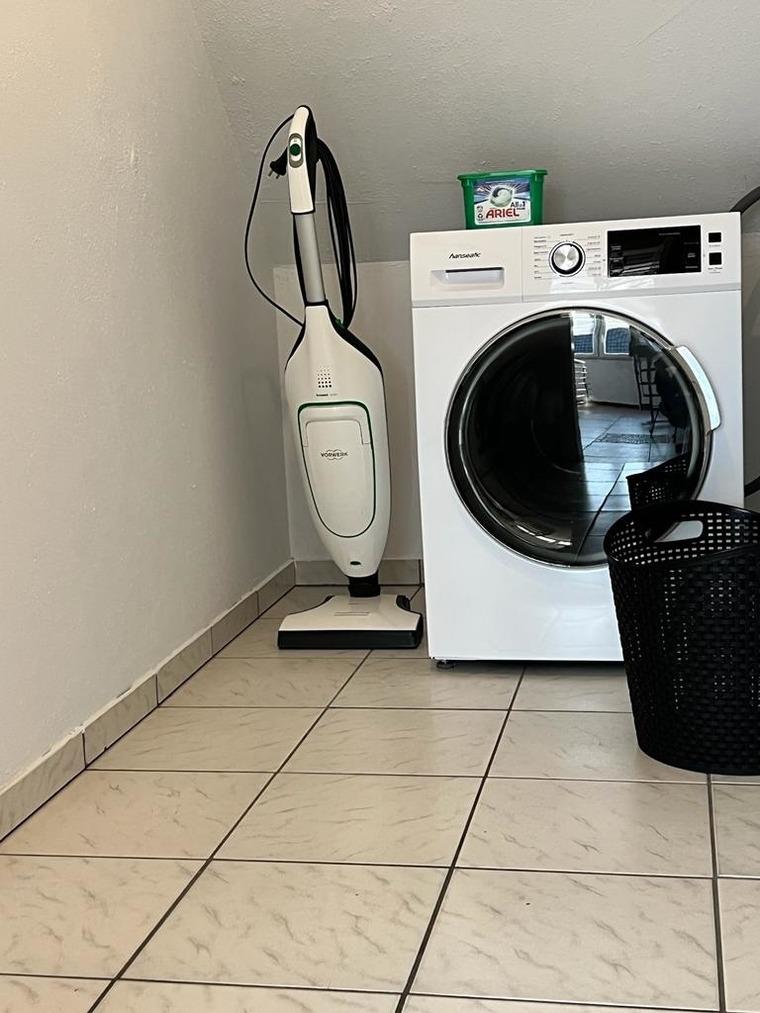 Unsere Ferienwohnung verfügt über ein großes Wohnzimmer. Eine Küche mit großem Essbereich, Bad mit WC und Dusche, drei getrennte Schlafzimmer (eins davon mit zusätzlichen Smart-TV), Hauswirtschaftsraum mit Waschmaschine und Gefriertruhe, eigenem Garten und einer gemütlichen Hütte zum sitzen. Ein Grill steht selbstverständlich zur Verfügung.