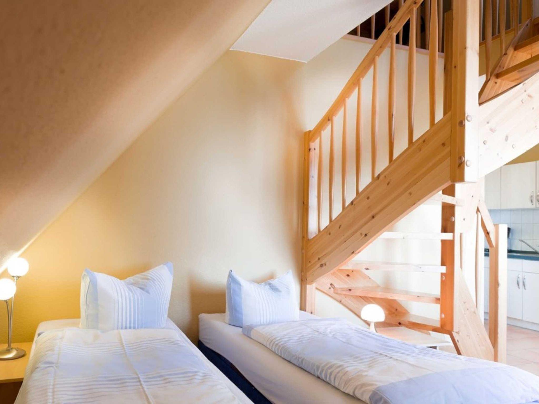 1 Schlafzimmer mit 2 Betten, Wohnraum mit 2 zusätzlichen Betten, sowie 1 Bad mit Dusche und WC.