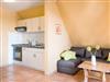 Mit komplett ausgestatteter Küche mit Kühl- und Gefrierkombi, 4 Kochplatten, Kaffeemaschine, Wasserkocher.
