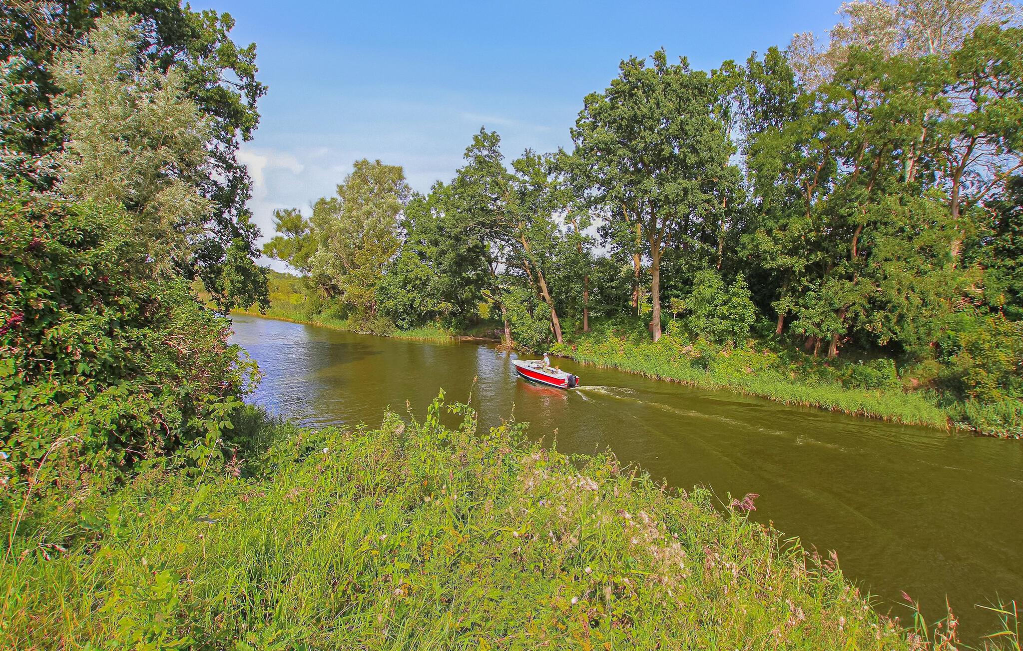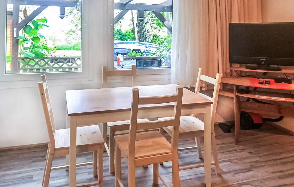 Kun få skridt fra Müritzarm, forbindelsen mellem Kleine Müritz og Müritzsee, ligger den hyggelige bungalow for op til 4 personer på en fælles naturgrund i skoven - den ideelle adresse for alle naturelskende gæster, der søger aktiv afslapning. Til det lille kompleks (i alt 4 feriehuse) hører en privat fælles anløbsbro, og en skøn offentlig badeplads med græsplæne til solbadning kan nås efter knap 200 m. Den ikke-ryger bungalow, som er på ca. 30 kvm. blev sidst renoveret i 2020, er udstyret med insektbeskyttelse på soveværelsesvinduet og har en stue (sovesofa, fladskærms-tv, radio, spisebord) med åbent tekøkken (keramisk kogeplade, køleskab med fryser, mikroovn, kaffemaskine , elkedel, brødrister), et soveværelse (dobbeltseng 1,60 m) og et renoveret badeværelse med bruser/toilet. Der er også overdækket, møbleret terrasse, udesauna, grill (anvendes afhængigt af gældende skovbrandadvarselsniveau!), fælles gangbro og parkeringsplads Slutrengøring er inkluderet i totalprisen. Medbring venligst håndklæder. Betales på stedet: el og vand efter forbrug. En hund er tilladt i denne ejendom.
