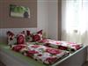 Ein Wohnzimmer, wo eine Aufbettung für 1 Person möglich ist, und ein Schlafzimmer mit Doppelbett.
