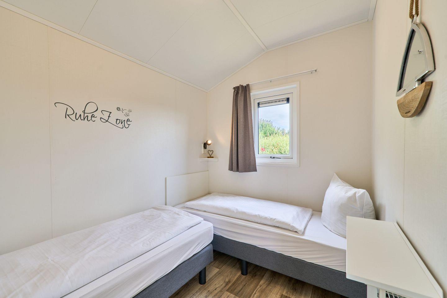 Ihre kompakte, aber liebevoll eingerichtete Lodge bietet alles, was Sie für einen entspannten Aufenthalt benötigen. Der kombinierte Wohn- und Schlafraum verfügt über ein bequemes Doppelbett sowie ein Etagenbett – ideal für Paare oder kleine Familien. In der Küchenzeile mit zwei Herdplatten und einem Kühlschrank bereiten Sie mühelos ein leckeres Frühstück oder kleine Mahlzeiten zu. Für Ihre tägliche Erfrischung steht Ihnen ein eigenes WC zur Verfügung; moderne Gemeinschaftsduschen befinden sich ganz in der Nähe im zentralen Waschhaus der Anlage. Bei gutem Wetter lädt ein kostenlos ausleihbarer Grill zu geselligen Abenden im Freien ein. Auf Wunsch kann gegen eine geringe Gebühr ein Hochstuhl für Kleinkinder bereitgestellt werden (bitte vorab anfragen).