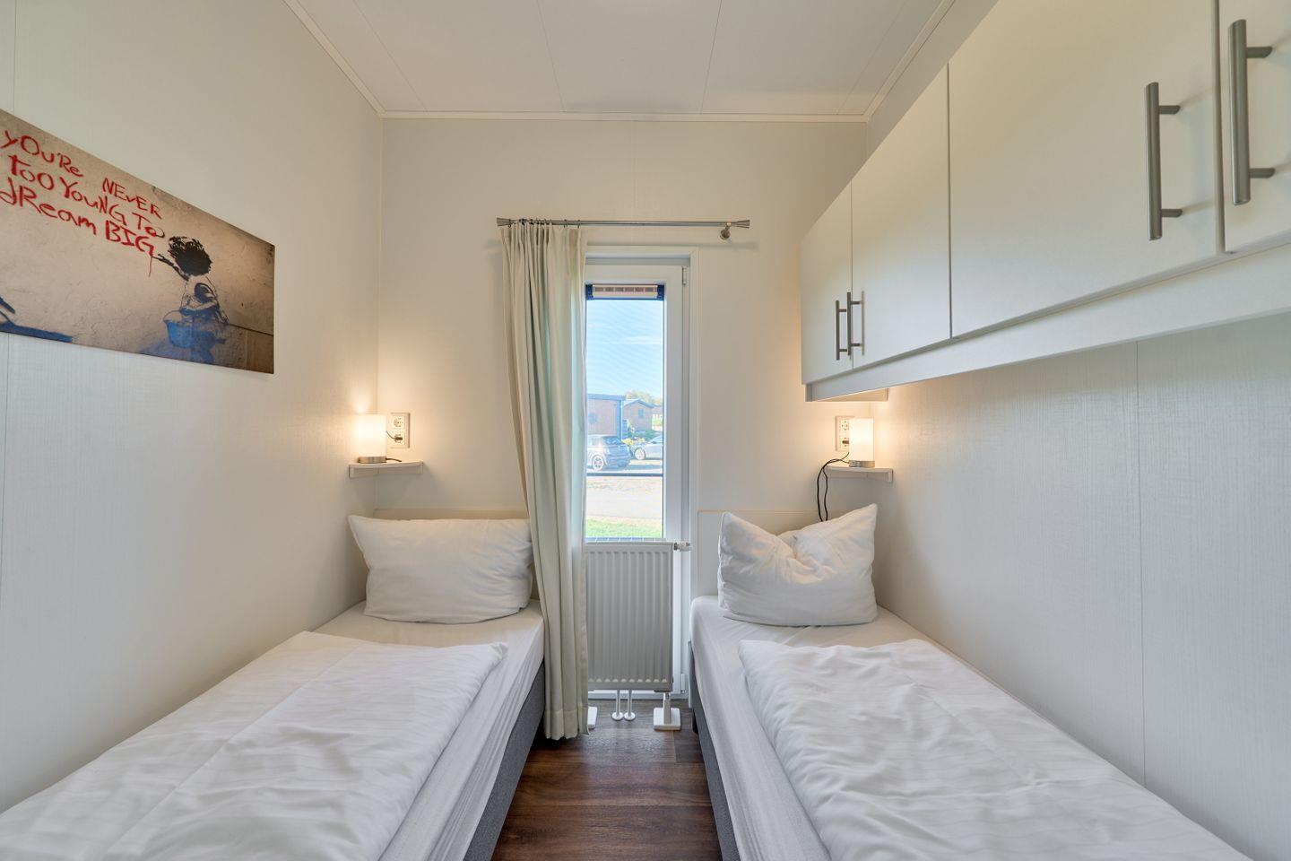 Das Ferienhaus verfügt über drei vollständig eingerichtete Zimmer, darunter zwei separate Schlafzimmer mit insgesamt vier Schlafmöglichkeiten – perfekt geeignet für Familien oder kleinere Gruppen. Das Badezimmer ist mit einer Dusche, Waschbecken, WC und Spiegel gut ausgestattet. Handtücher und Bettwäsche werden Ihnen komfortabel bereitgestellt. Die Fenster sämtlicher Räume sind mit Sichtschutz versehen, sodass Privatsphäre gewahrt bleibt.