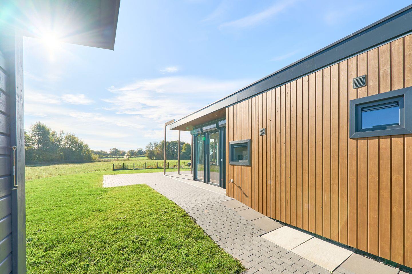 Im Außenbereich wartet eine möblierte Terrasse, auf der Sie entspannte Stunden verbringen und den Ausblick auf die grüne Umgebung oder den nahen See genießen können. Sie erreichen den See in nur etwa 150 Metern und haben somit ideale Möglichkeiten für Schwimmen und Wassersport. Sport- und Aktivurlauber profitieren von einem breiten regionalen Freizeitangebot: In der Nähe werden Wasserski, Radfahren, Wandern, Joggen und weitere sportliche Aktivitäten geboten. Für Golfer ist der nächste Golfplatz nur rund 5.000 Meter entfernt. Im Umkreis von 7.000 Metern finden Sie einen Sandstrand, sodass auch ein Tagesausflug ans Meer problemlos möglich ist.