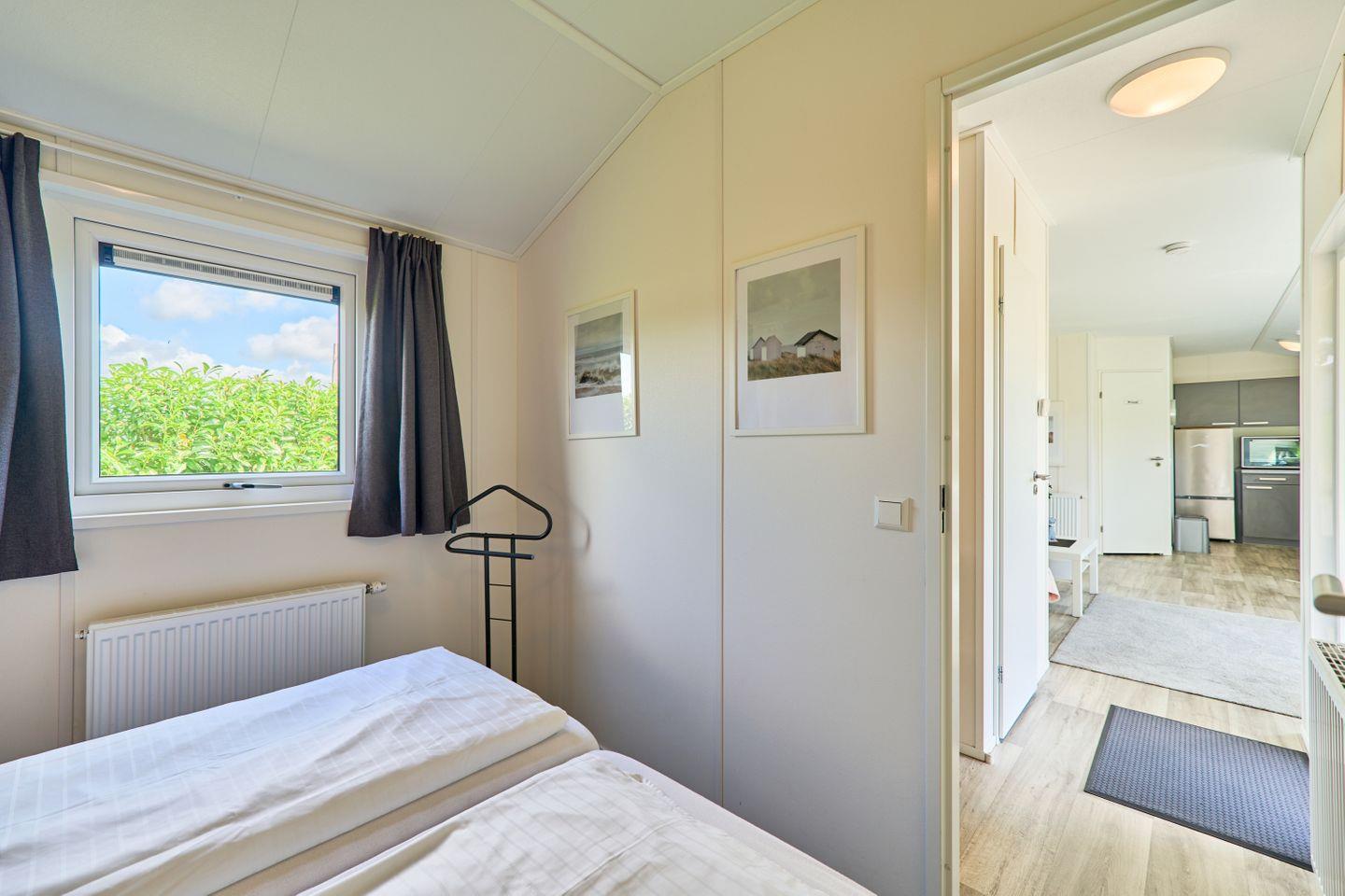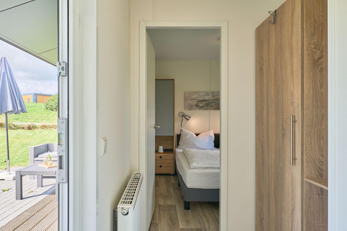Im separaten Schlafzimmer befinden sich die Schlafplätze. Insgesamt gibt es zwei Schlafmöglichkeiten. Für einen angenehmen Aufenthalt sorgen Bettwäsche und Handtücher, die bereitgestellt werden. Das Badezimmer ist mit Dusche, WC, Waschbecken, Spiegel und Abfalleimer ausgestattet.