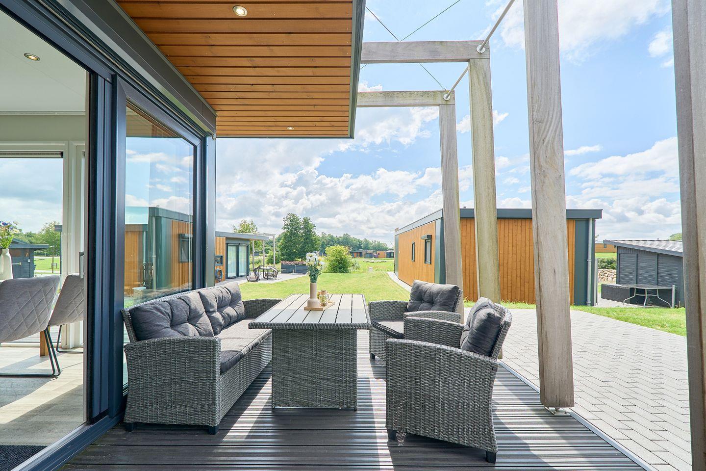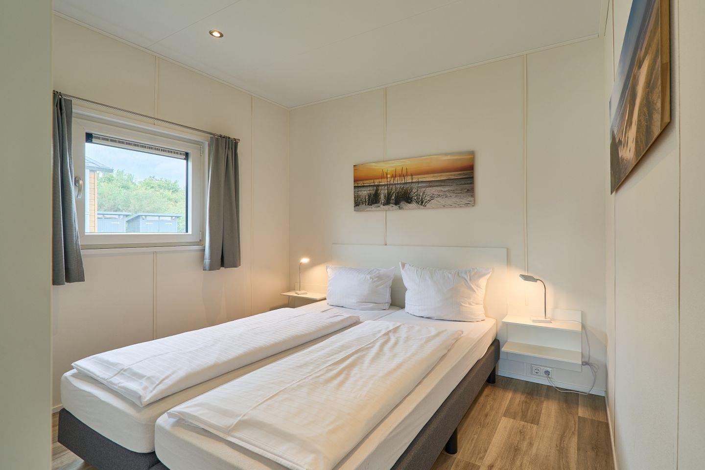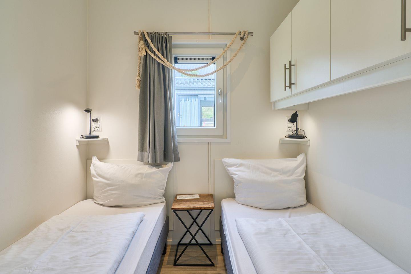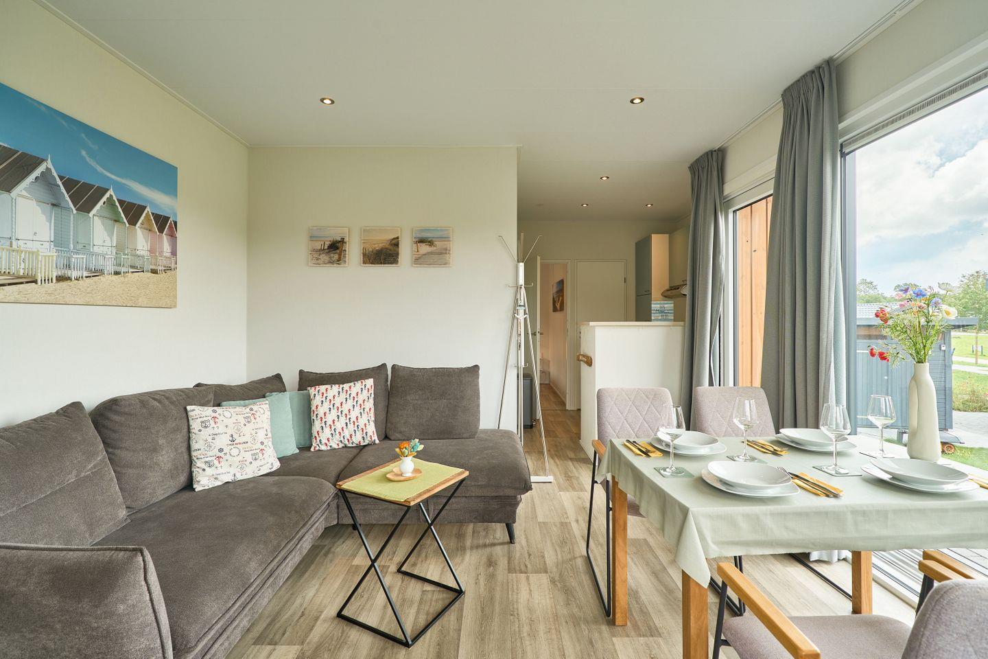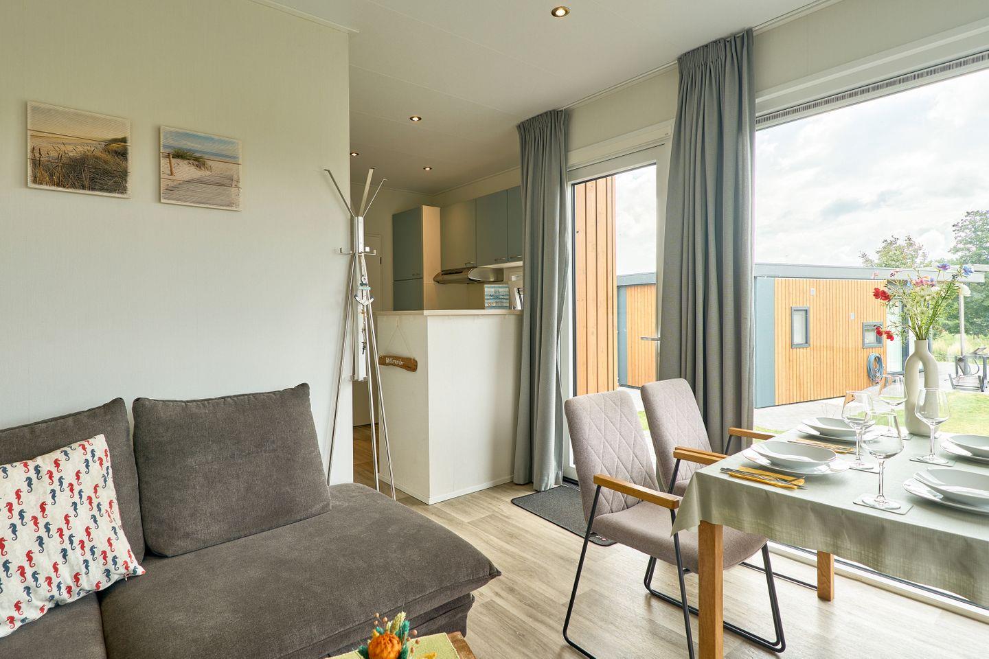 Eine möblierte Terrasse mit Gartenmöbeln lädt zum Verweilen im Freien ein. Direkt am Haus steht Ihnen ein kostenloser Parkplatz zur Verfügung, zudem gibt es eine Ladestation für Elektroautos auf dem Gelände. Der Ferienpark bietet Böllerverbot, somit ist ein ruhiger Aufenthalt – beispielsweise zu Silvester – möglich.