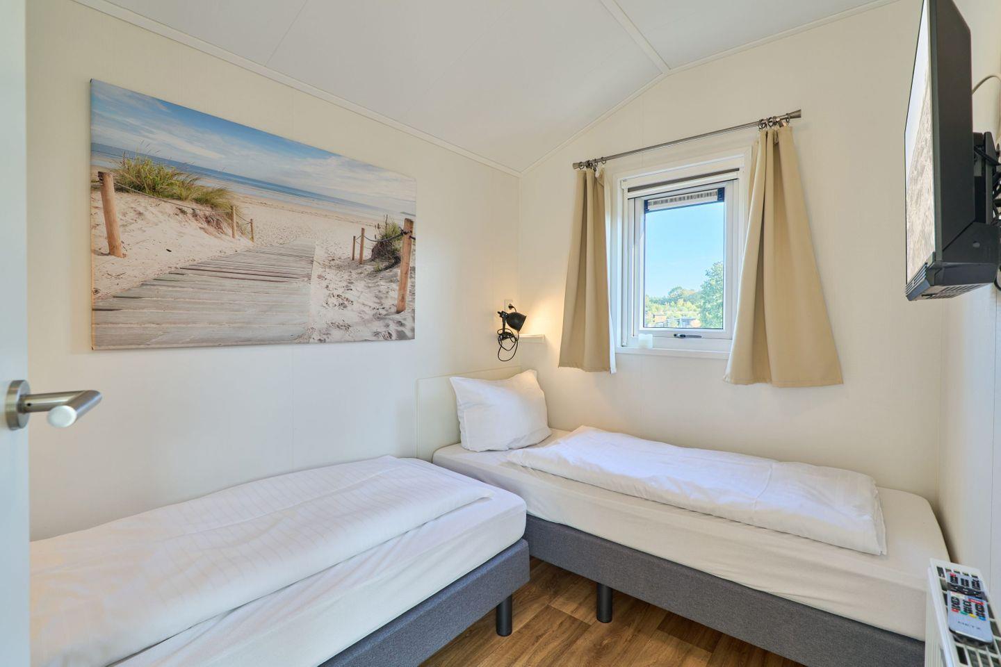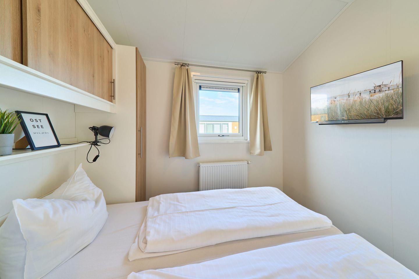 Das Ferienhaus ist mit zwei separaten Schlafzimmern ausgestattet, die insgesamt vier Schlafgelegenheiten bieten. Das modern gestaltete Badezimmer verfügt über eine Dusche, Waschbecken, WC, Spiegel und durchdachten Sichtschutz an allen Fenstern, der Privatsphäre garantiert. Handtücher und Bettwäsche stehen Ihnen ebenso zur Verfügung.