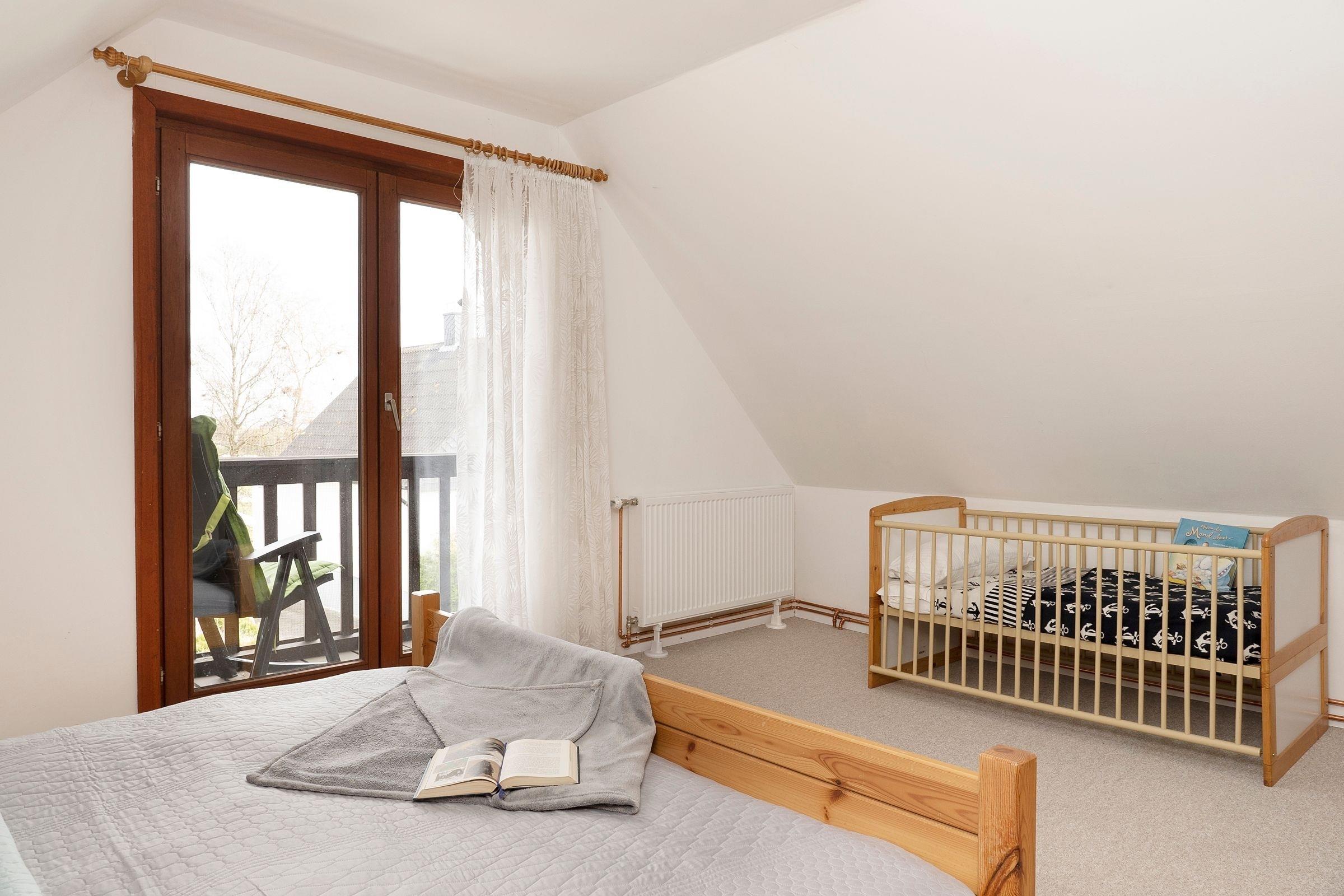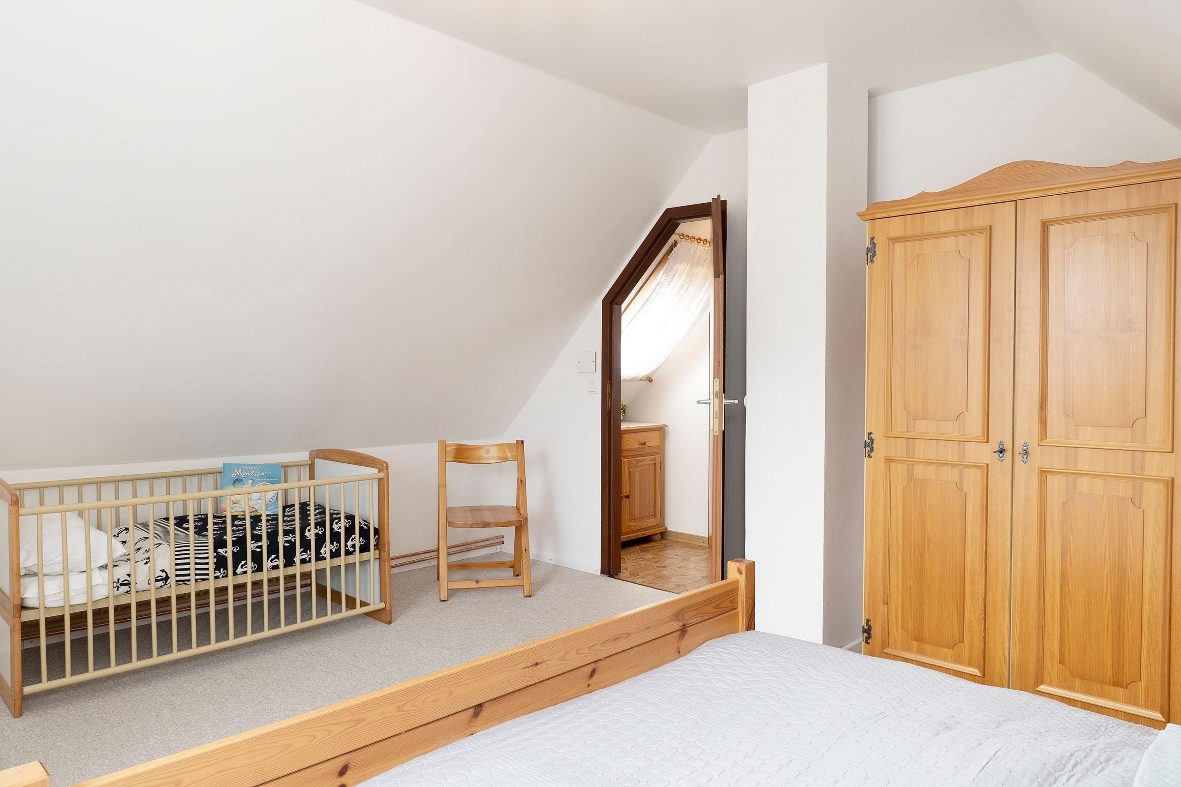 Schlafzimmer: 1 Doppelbett (2x 90x200 cm), 1 Gitterbett, Kleiderschrank