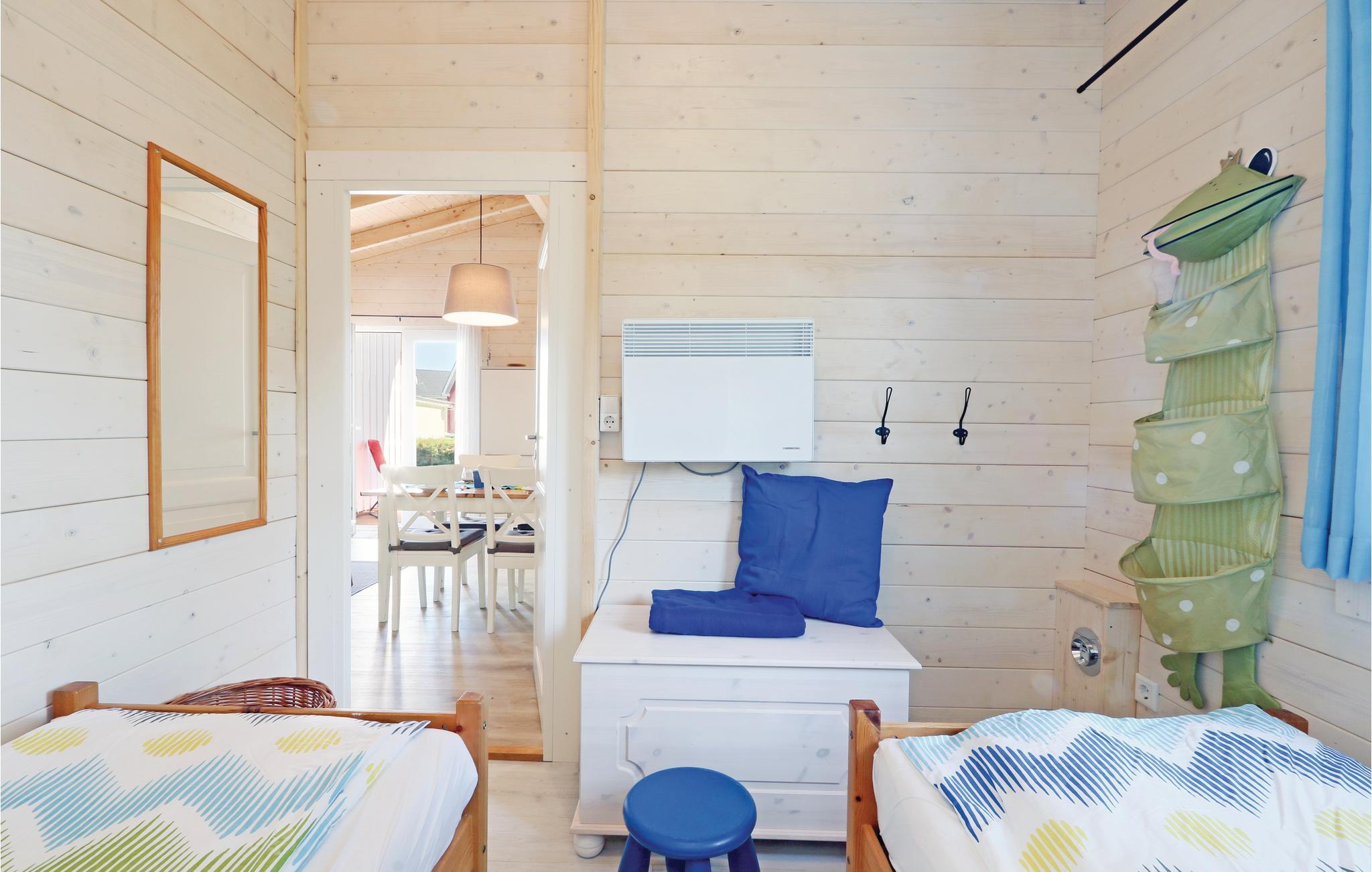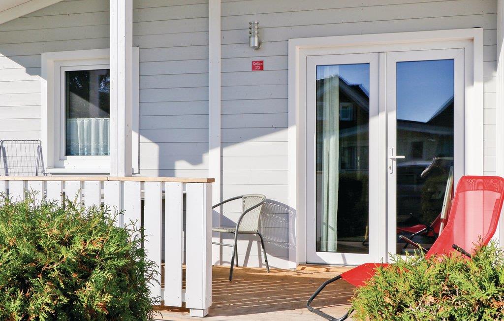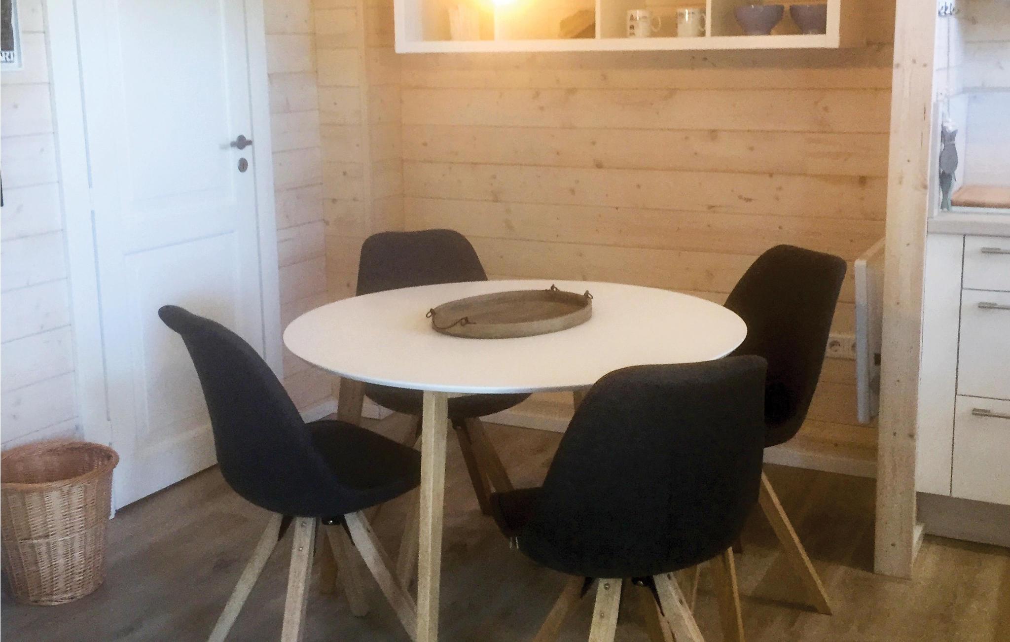Træhuset er moderne og hyggeligt indrettet. Der er to separate soveværelser med en dobbeltseng og to enkelte senge. Det lille køkken i boligområdet er komplet udstyret. Om sommeren kan I nyde livet på den åbne terrasse. Her er der havemøbler og en grill til jeres rådighed. Her kan I slappe af og nyde tiden med familien.