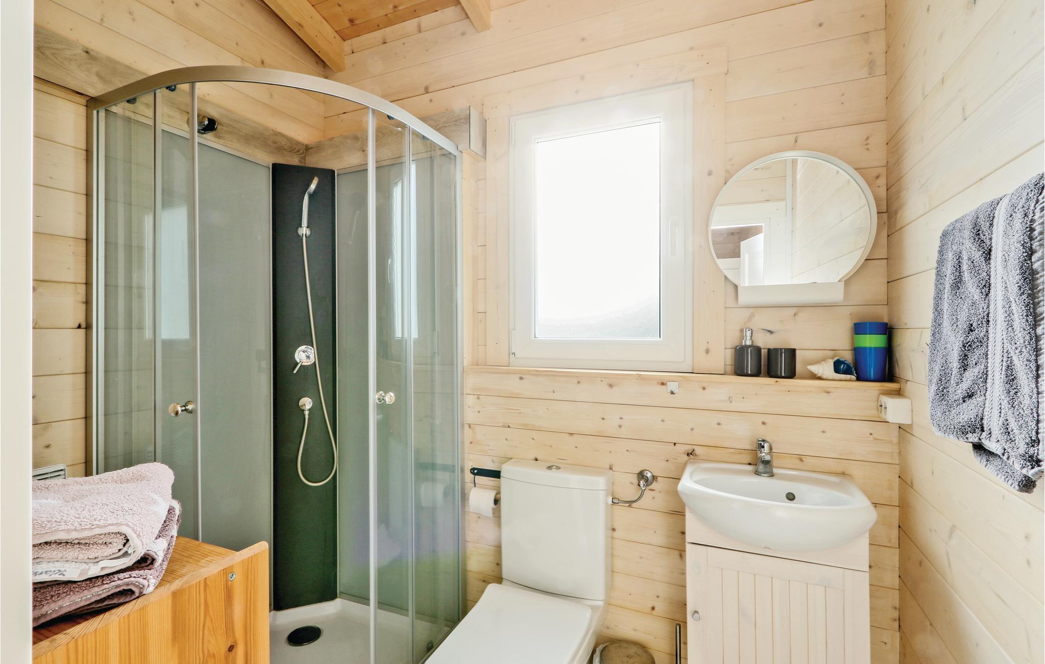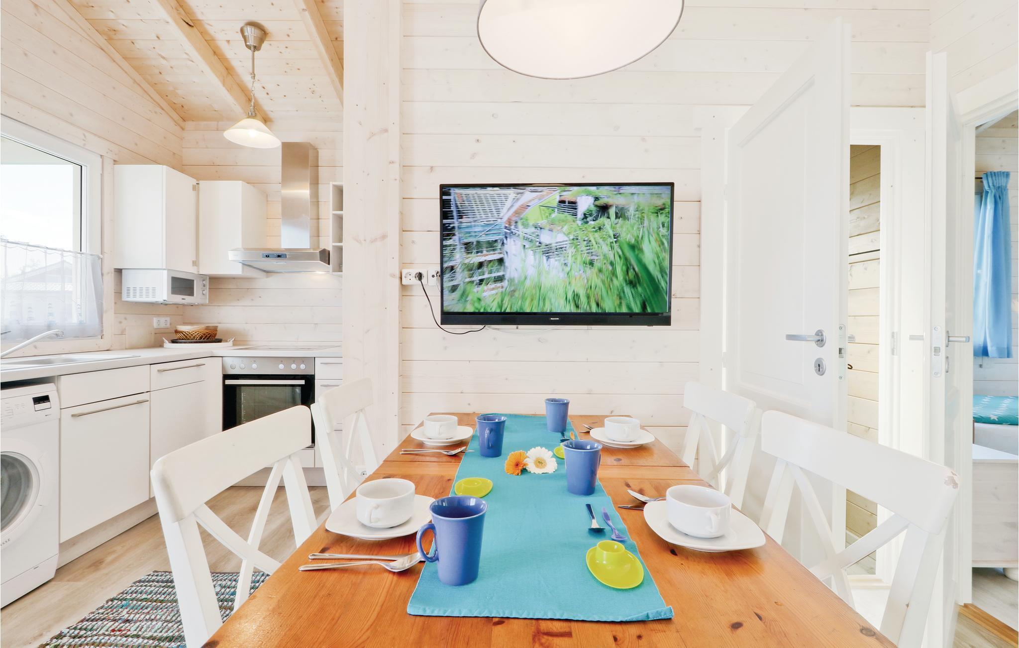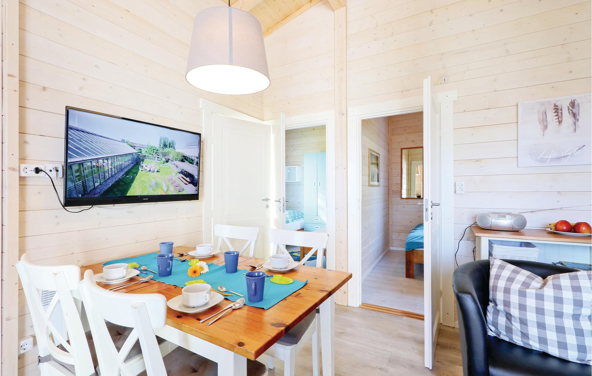 Træhuset er moderne og hyggeligt indrettet. Der er to separate soveværelser med en dobbeltseng og to enkelte senge. Det lille køkken i boligområdet er komplet udstyret. Om sommeren kan I nyde livet på den åbne terrasse. Her er der havemøbler og en grill til jeres rådighed. Her kan I slappe af og nyde tiden med familien.