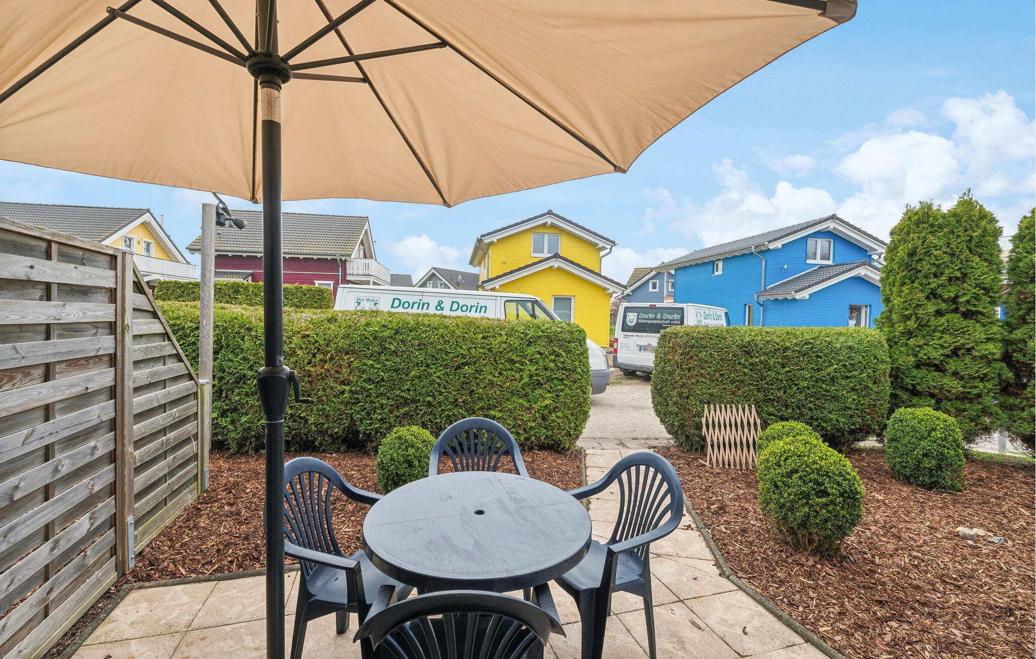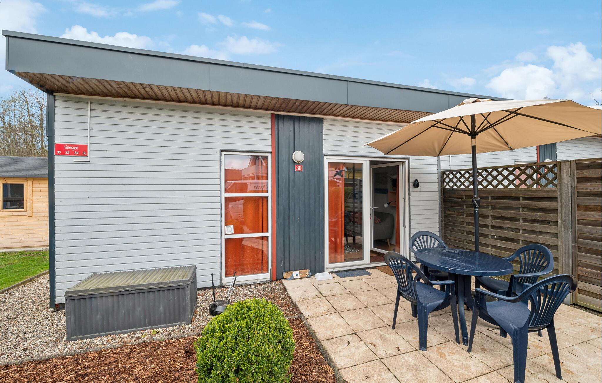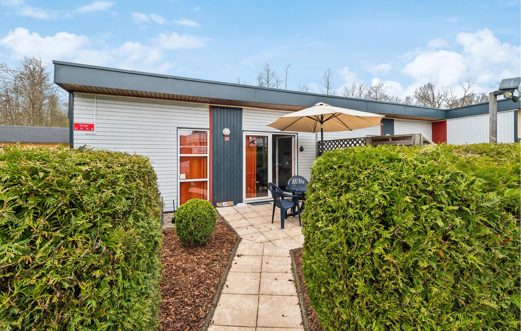 Dette hyggelige hus ligger i ferieparken Süssauer Strand., og her kan I tilbringe en afslappende ferie og endda kombinere den med dit arbejde.