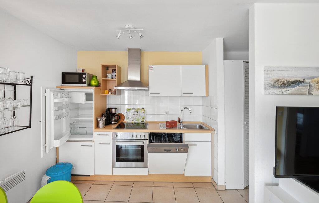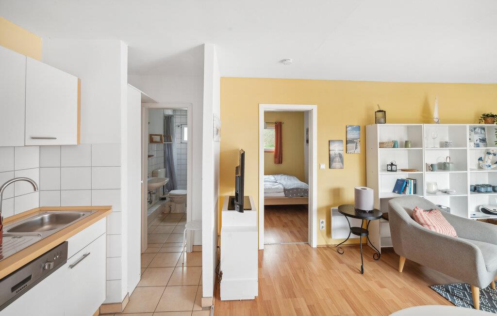 Foran huset kan I finde jer godt til rette i havemøblerne, og bag huset finder I en dejlig græsplæne og en legeplads. Huset har en hyggelig stue med integreret køkken, opvaskemaskine, mikroovn og to soveværelser med hver to enkeltsenge. Denne bolig er ideel til små familier eller par, og herfra kan I lytte ??bølgernes skvulp, da Østersøen med sin smukke naturlige strand kun ligger få meter væk. Seeigel 30-lejligheden er et godt valg for alle, der gerne vil kombinere arbejde og badeferie, da der er skrivebord i et af soveværelserne og en rigtig god internetforbindelse.