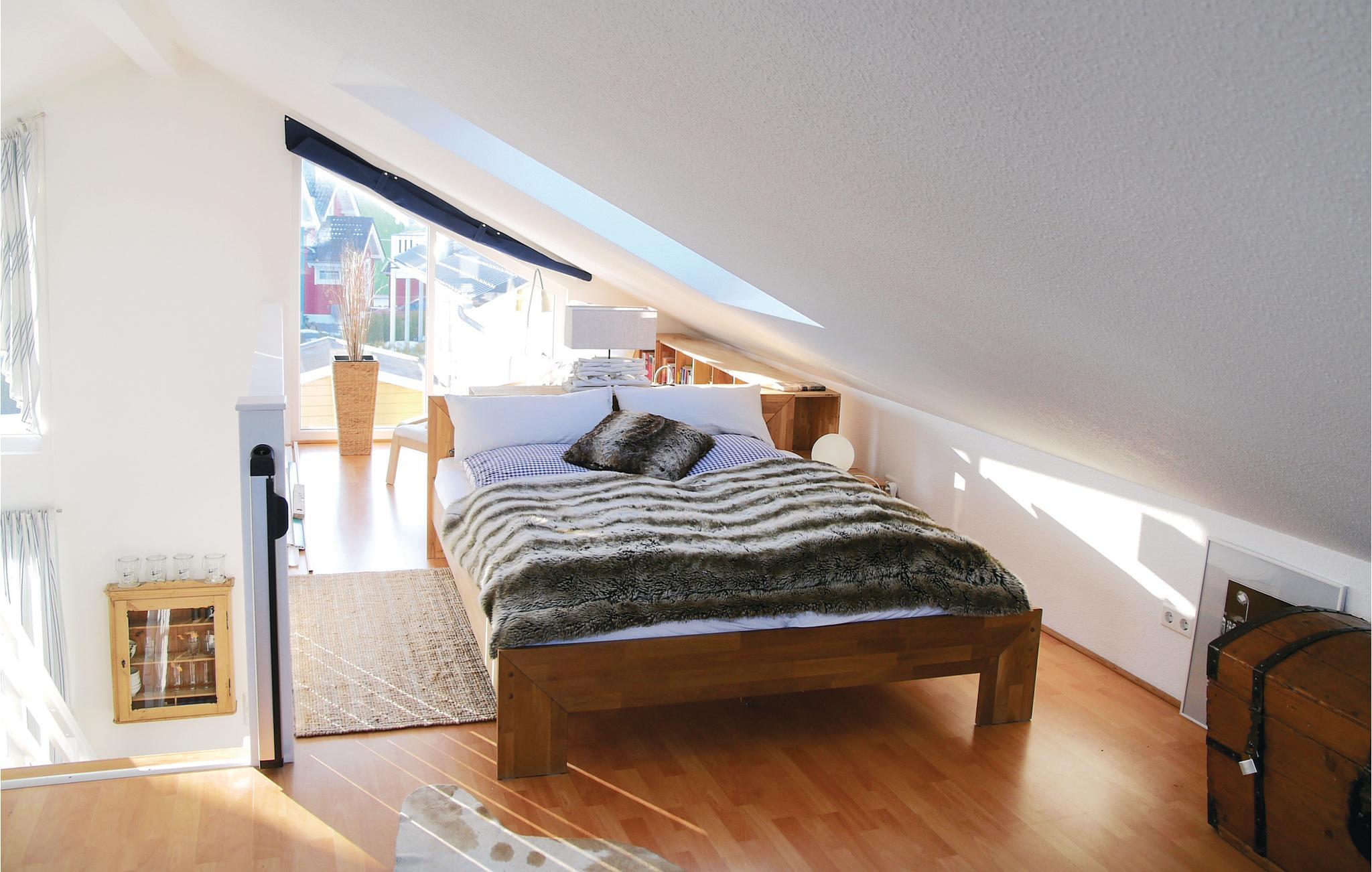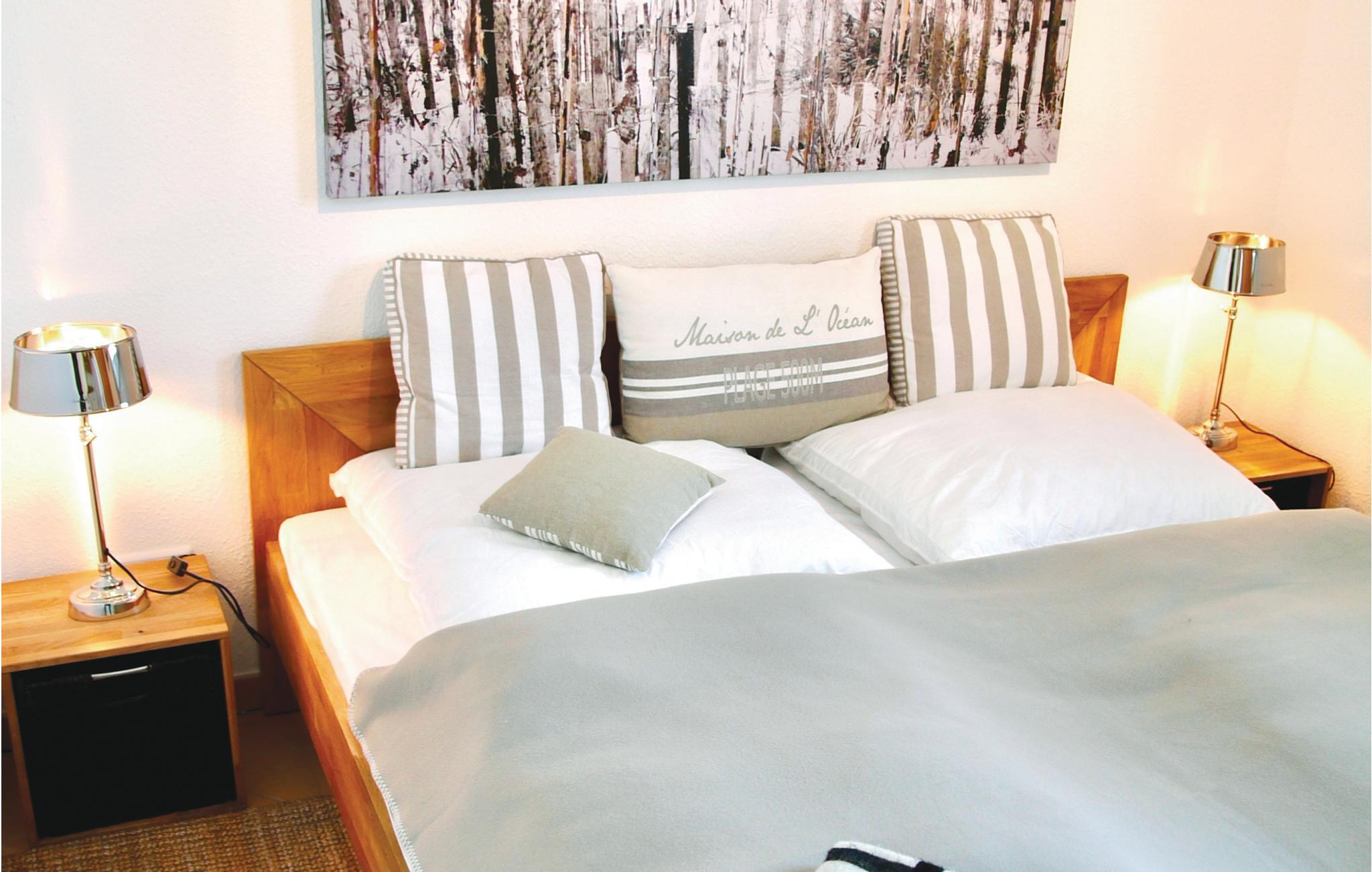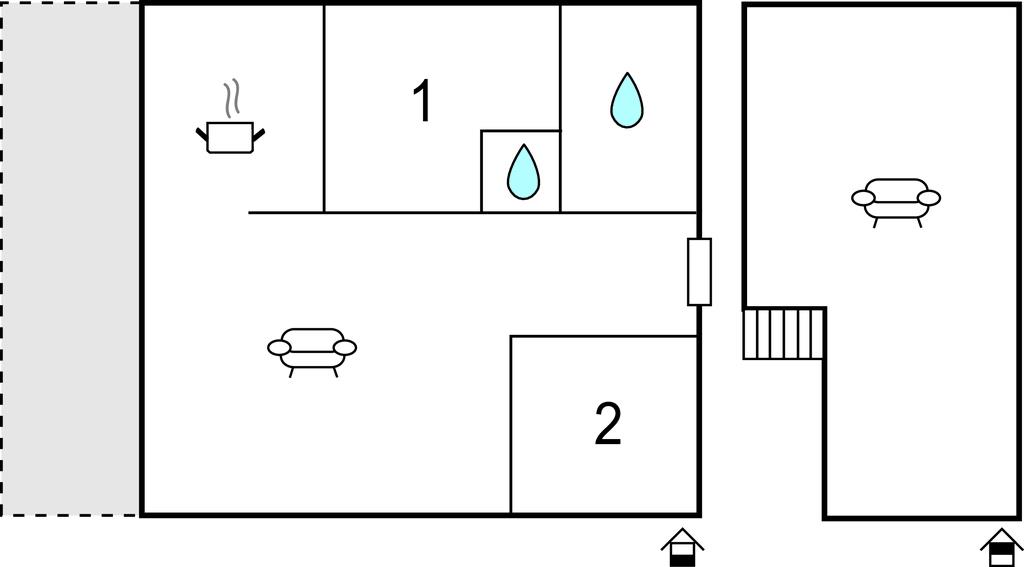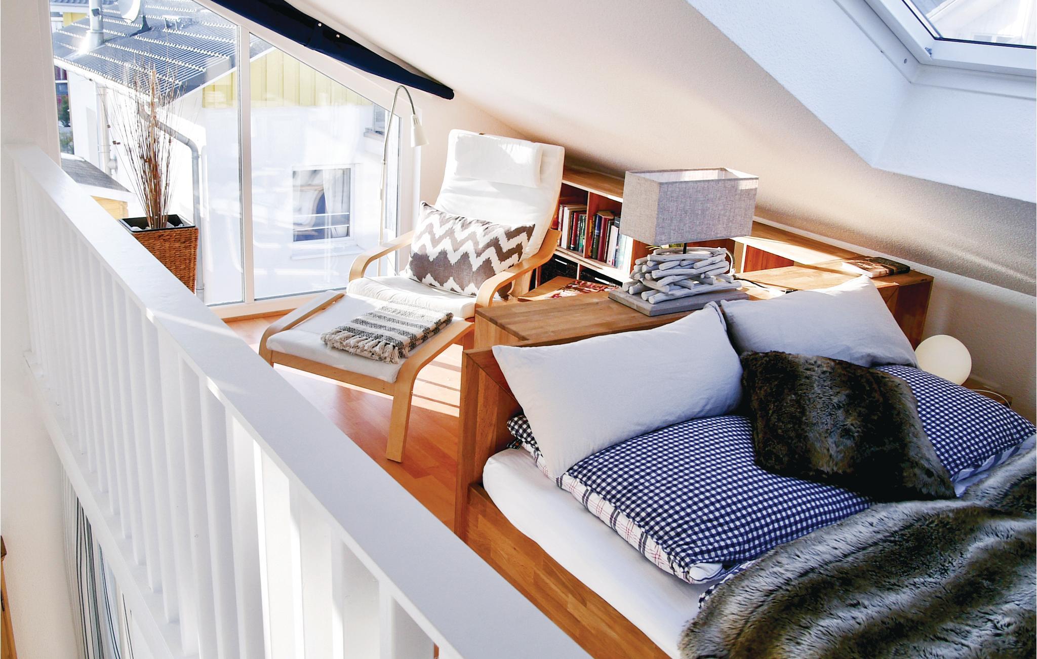 I stueetagen er der to soveværelser, hvoraf det ene har en dobbeltseng, i det andet finder I to enkeltsenge. På hemsen er der der yderlige to sovepladser.
