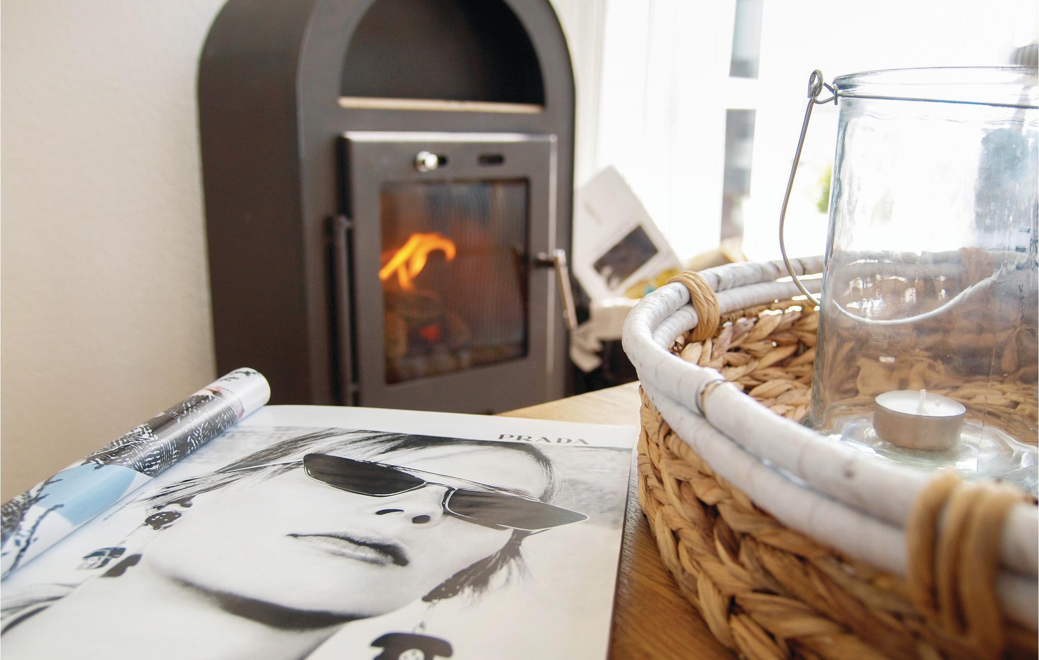 Huset er gennemstrømmet af lys på grund af den galleriagtige opbygning med gulv til loft-vinduer. På kolde dage sørger pejsen for hyggelig varme.