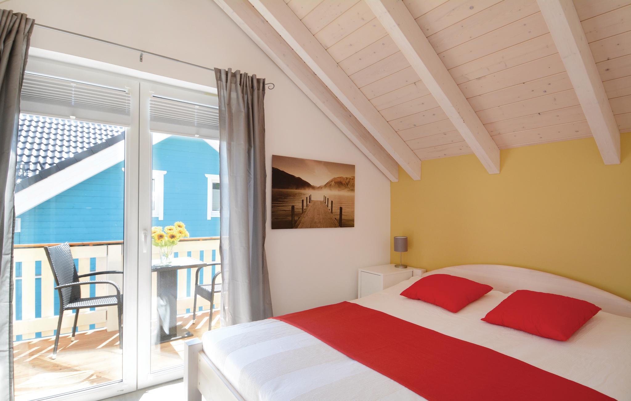 Dejligt lyst hus med svalegang og havudsigt fra husets førstesal. De store vinduer, som går fra gulv til loft, og et vindueshjørne lukker den lyse dag ind, ligesom de tilføjer en lys og let stemning i huset. Det veludstyrede køkken ligger i åben forbindelse med stuen, hvor der står en brændeovn, som hurtigt spreder en bekvem varme, skulle der komme en kølig stund. En trappe fører op til den brede svalegang på 22 m², hvor der både er en dobbeltseng og et lille hyggehjørne. Herfra kan I nyde den skønne panoramaudsigt over Østersøens bølger, der afspejler den blå himmel. Huset kan også prale af balkon samt en terrasse med bekvemme havemøbler og en grill, der kan benyttes året rundt, så I slipper for stegeos i køkkenet.