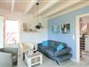 To af soveværelserne har dobbeltsenge, mens det tredje soveværelse har to enkeltsenge. Alle værelser har fjernsyn. I to soveværelser har I desuden adgang til altanen, hvorfra I kan nyde en smuk havudsigt. Derudover er der et separat gæstetoilet og en sauna, så I ikke kommer til at mangle noget. Denne bolig er ideel til jer, der sætter pris på komfort, og byder plads til op til seks personer samt en hund. Børnene vil nyde legehuset og sandkassen.