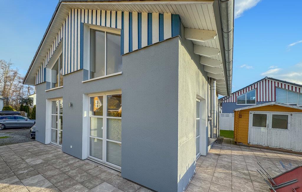 Fra daglig- og spisestuen med åbent køkken og brændeovn kommer I op ad en trappe til det andet, generøse dagligområde på 22 m², hvorfra I kan nyde panoramaudsigten over Østersøen. I stueetagen er der to soveværelser og to badeværelser. Endnu en dobbeltseng er på hemsen. Huset råder desuden over en altan samt en stor terrasse med havemøbler og egen grill.