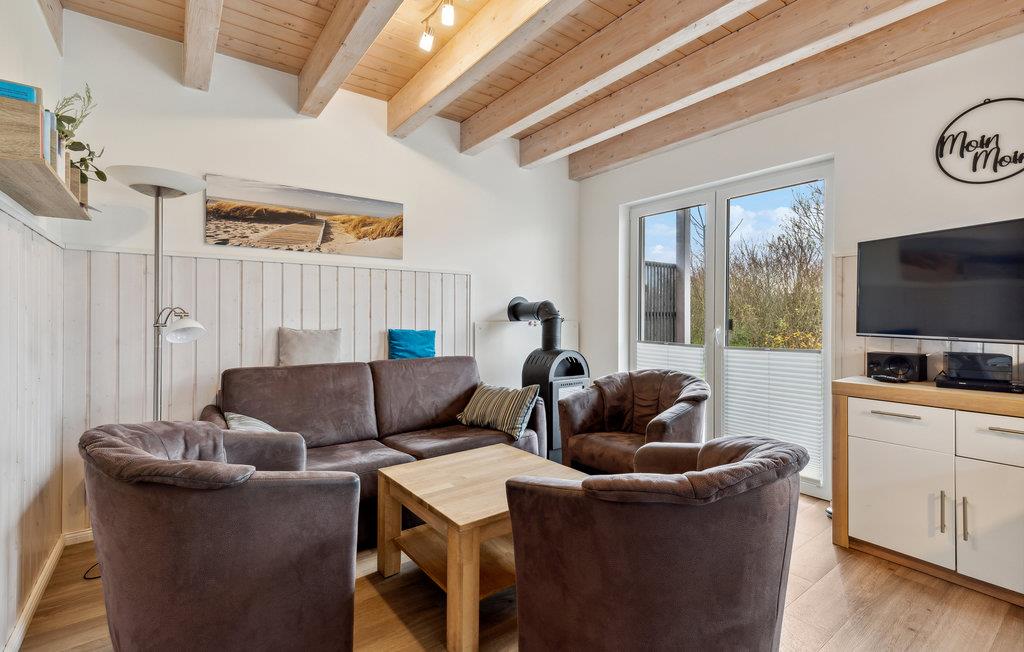 Ikke kun takket være den private sauna, men også den hyggelige pejs er dette hus det perfekte sted til ro og afslapning også i den kolde tid af året.