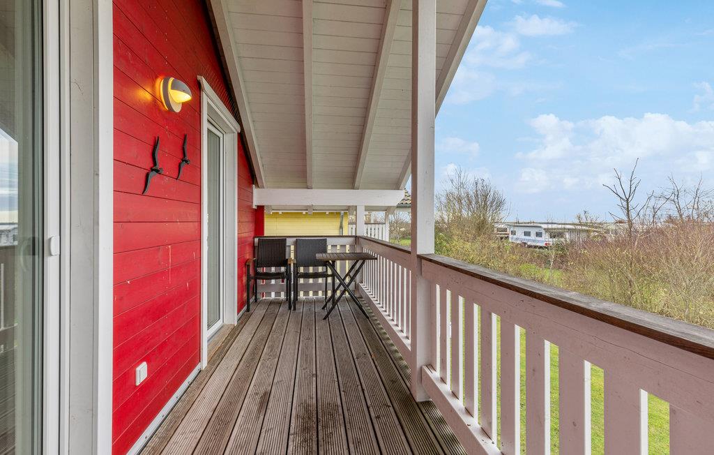 I har hele to måder at nyde solen og Østersøens friske luft på: Fra det hyggelige dagligområde kommer I ud til den flotte veranda i det grønne. På første sal har hele to af de tre soveværelser direkte adgang til altanen, så I kan lade blikket strejfe over markerne helt til Østersøen, lige så snart I er stået op.