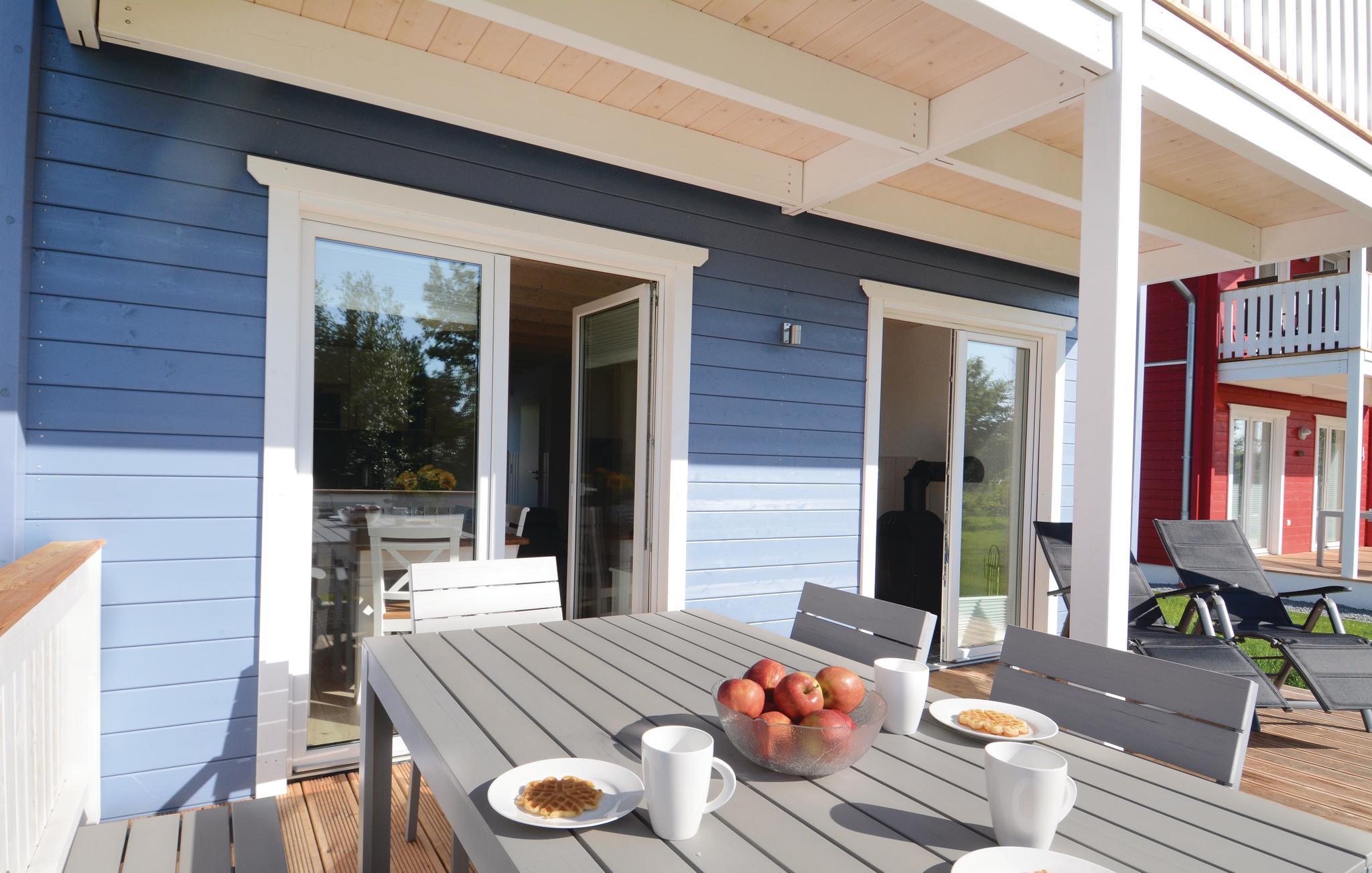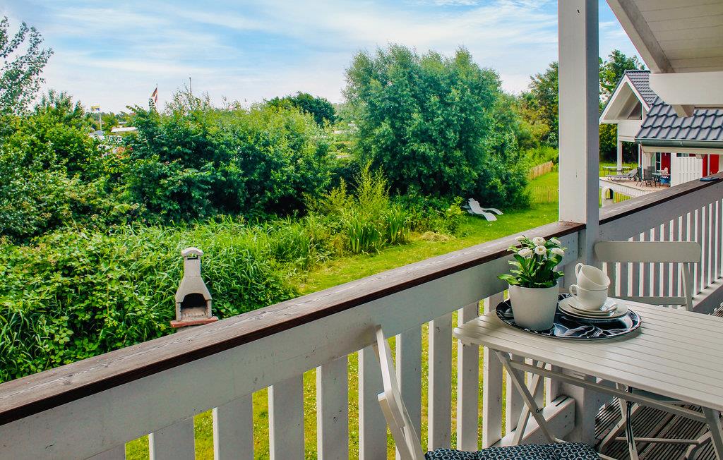 Solen og den skønne Østersø-luft kan I nyde dobbelt: Fra det store opholdsområde kommer I direkte ud på den kønne veranda i det grønne. På første sal kan I komme direkte fra hele to af de tre soveværelser ud på balkonen, og I kan lade blikket svæve hen over engene ud til Østersøen, lige når I er stået op.