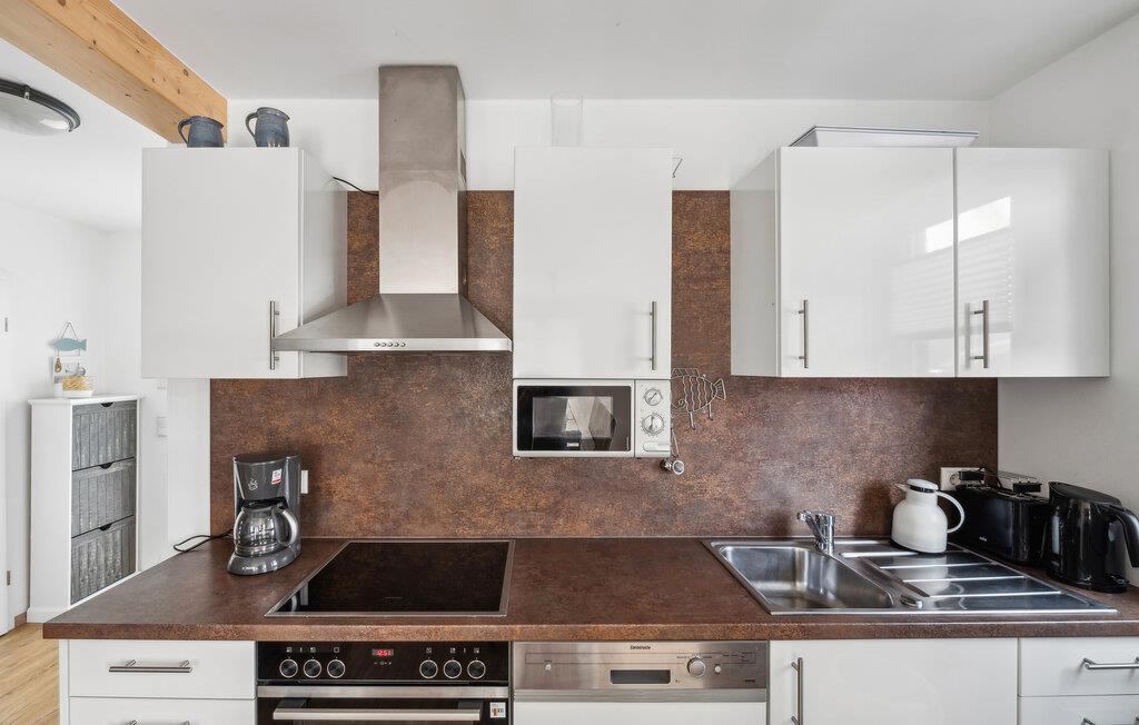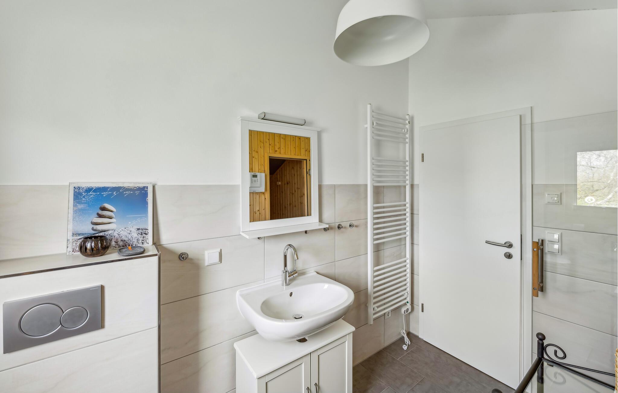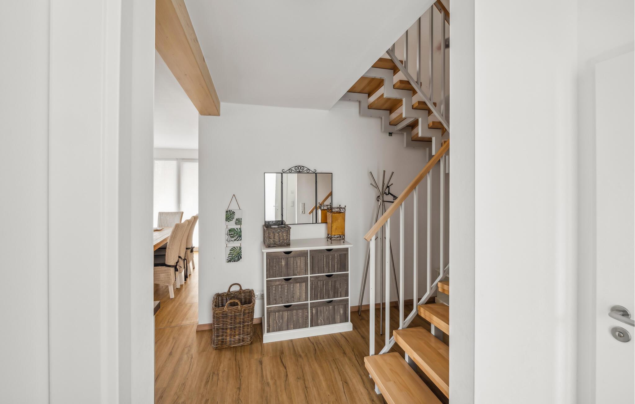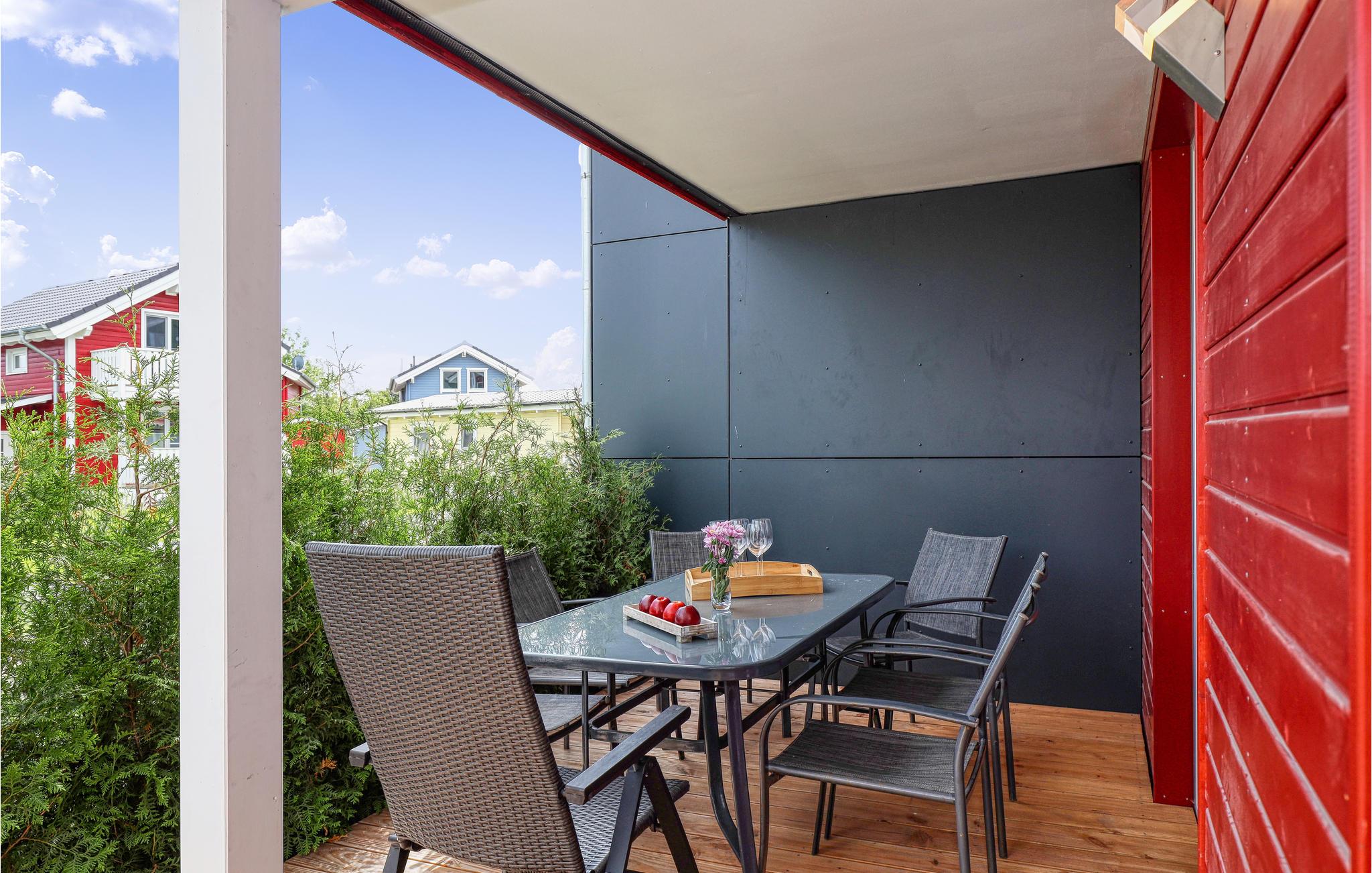 Dette feriehus fordeler sig over tre etager. I stueetagen er der et åbent, hyggeligt opholdsområde med en tilstødende terrasse, et moderne køkken og et gæstetoilet. På første sal er der en rummelig altan, som indbyder til ophold. Desuden er der her tre soveværelser og et brusebad. Et fjerde soveværelse med galleri og et stort badeværelse med sauna finder I på anden sal. Her kan I nyde den skønne havluft og en fantastisk udsigt over Østersøen fra den øverste altan. Møbler af høj kvalitet, en vellykket ruminddeling samt de rolige omgivelser gør dette hus til et drømmeferiebolig.
