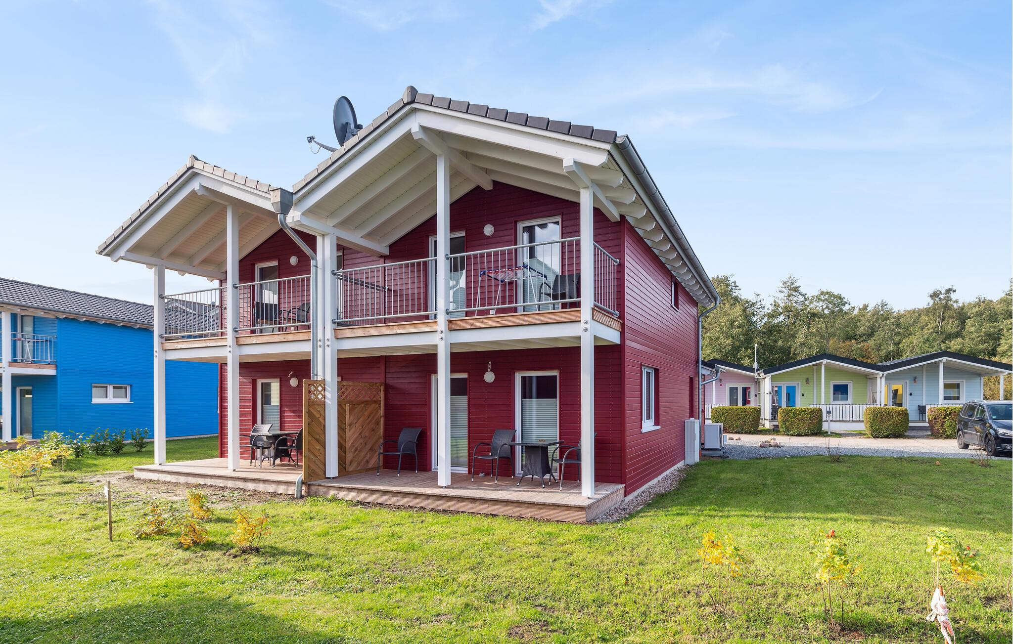 Huset fordeler sig over to etager. I stueetagen er der en åben, hyggelig opholdsstue med tilstødende terrasse, moderne køkken og brusebad med sauna. På første sal kan I nyde solen på den rummelige altan. Der er også to soveværelser og et badeværelse på dette niveau. Her kan I nyde den skønne friske havluft og en fantastisk udsigt over feriebyen fra balkonen. Lækre indretningsløsninger og en vellykket rumdeling gør dette feriehus til et drømmehus i rolige omgivelser.