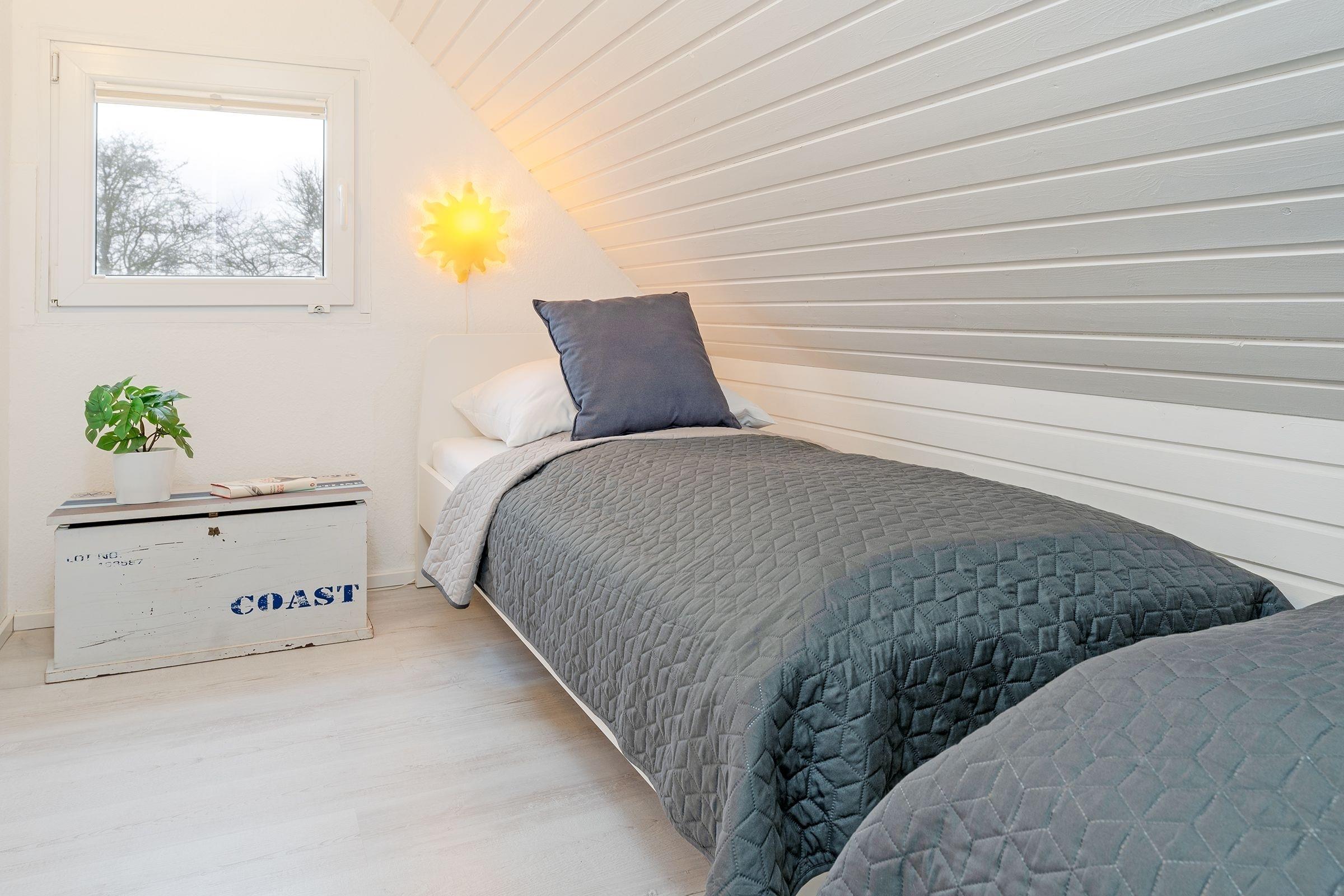 Schlafzimmer 2 (OG): 2 Einzelbetten (je 90x200 cm), Verdunkelung: Rollo, Platz für ein Babybett vorhanden