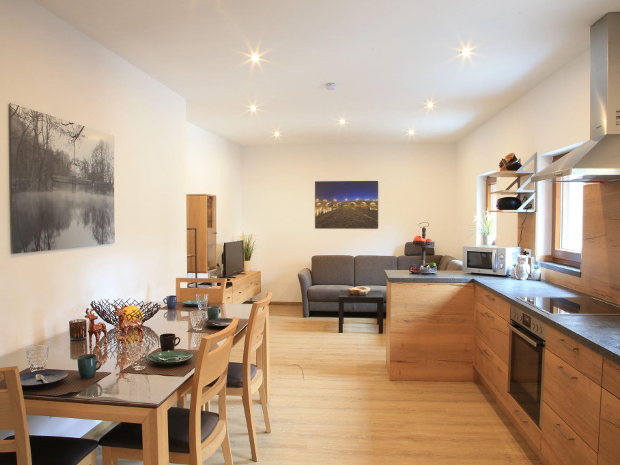 Unsere gemütliche, komfortable Ferienwohnung ist eingebettet in einem Dreiseithof. Sie liegt in bester Lage mit unmittelbarer Nähe zum Saaler Freibad sowie einem kleinen Bach. Nur 2 Minuten Fußweg entfernt befindet sich ein Bäcker sowie eine Apotheke. Weitere Einkaufsmöglichkeiten sowie ein Bahnhof sind direkt am Ort. Saal hat eine gute Verkehrsanbindung was den öffentlichen Nahverkehr betrifft sowie die Nähe zur Autobahn A93. Einige Radwege führen direkt an Saal vorbei (z.B. 5- Flüsse-Radweg). Der Bahnhof Saal befindet sich in ca. 900 m Entfernung zur Ferienwohnung.