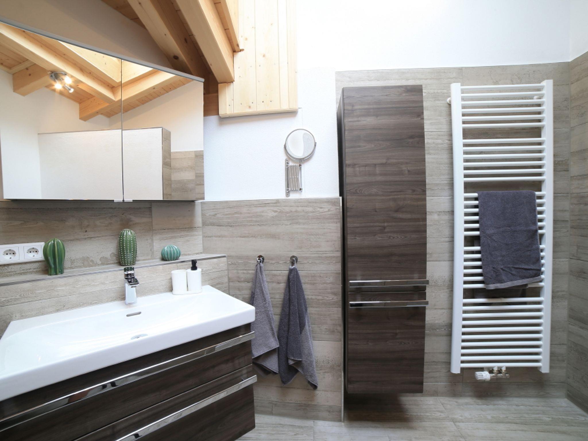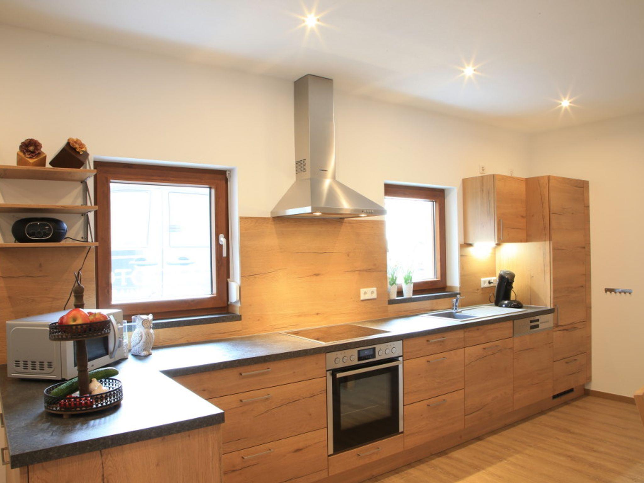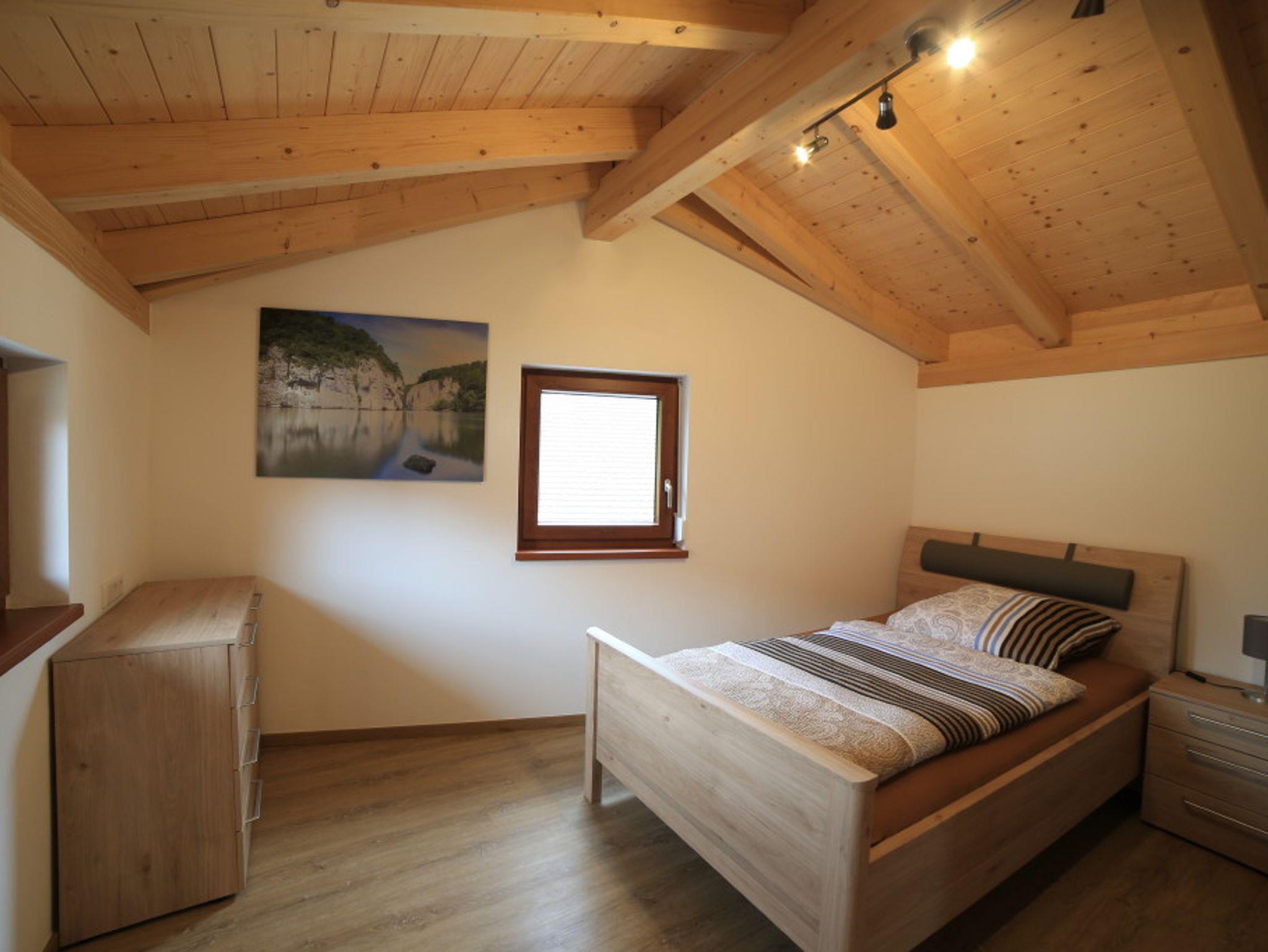 Der rustikale Eingangsbereich zur Ferienwohnung ist komplett überdacht. Ausgestattet mit einer Sitzgruppe können Sie hier gemütliche Abende verbringen. Im Erdgeschoss befindet sich die gut ausgestattete Küche, welche direkt ins Wohnzimmer übergeht. Am großzügigen Küchentisch können Sie Ihr Frühstück einnehmen und Ihren Tag planen. Im Wohnbereich finden Sie eine gemütliche Couch sowie einen Fernseher. Hier können Sie nach einem ereignisreichen Tag einfach mal abschalten. Hier finden Sie Bücher und Spiele. Insgesamt befinden sich drei Schlafzimmer im Obergeschoss, welche Platz für bis zu 6 Personen (maximal 5 Erwachsene) bieten. In unseren großen und gemütlichen Betten können Sie Kraft für den nächsten Tag tanken. Der Sichtdachstuhl strahlt Wärme und Gemütlichkeit aus. Großzügige Schränke bieten genügend Platz für Ihr Gepäck. Die Fenster verfügen über Fliegengitter, sodass Sie ungestört schlafen können. Der größte Raum enthält ein Doppelbett 2 m x 2 m, einen Schrank, zwei Nachtkästchen mit Lampe sowie ein Babybett.Das vordere Schlafzimmer verfügt über ein Bett mit 1,2 m x 2 m, einen großen Schrank mit Kommode sowie ein Nachtkästen.In einem weiteren Zimmer finden Sie ein Bett mit 1,4 m x 2 m, zwei Kommoden sowie ein Nachtkästchen mit Licht, vor.Im Obergeschoss finden Sie das lichtdurchflutete Badezimmer. Ausgestattet mit einer großen, ebenerdigen Dusche. Ein Handtuchheizköper ist vorhanden. Die Schränke bieten Ihnen ausreichend Stauraum für Ihre Utensilien. Eine Waschmaschine steht für Sie bereit. Im Erdgeschoss befindet sich ein weiteres WC. Beide Sanitärraume sind mit Fußbodenheizung und Tageslichtfenstern ausgestattet.