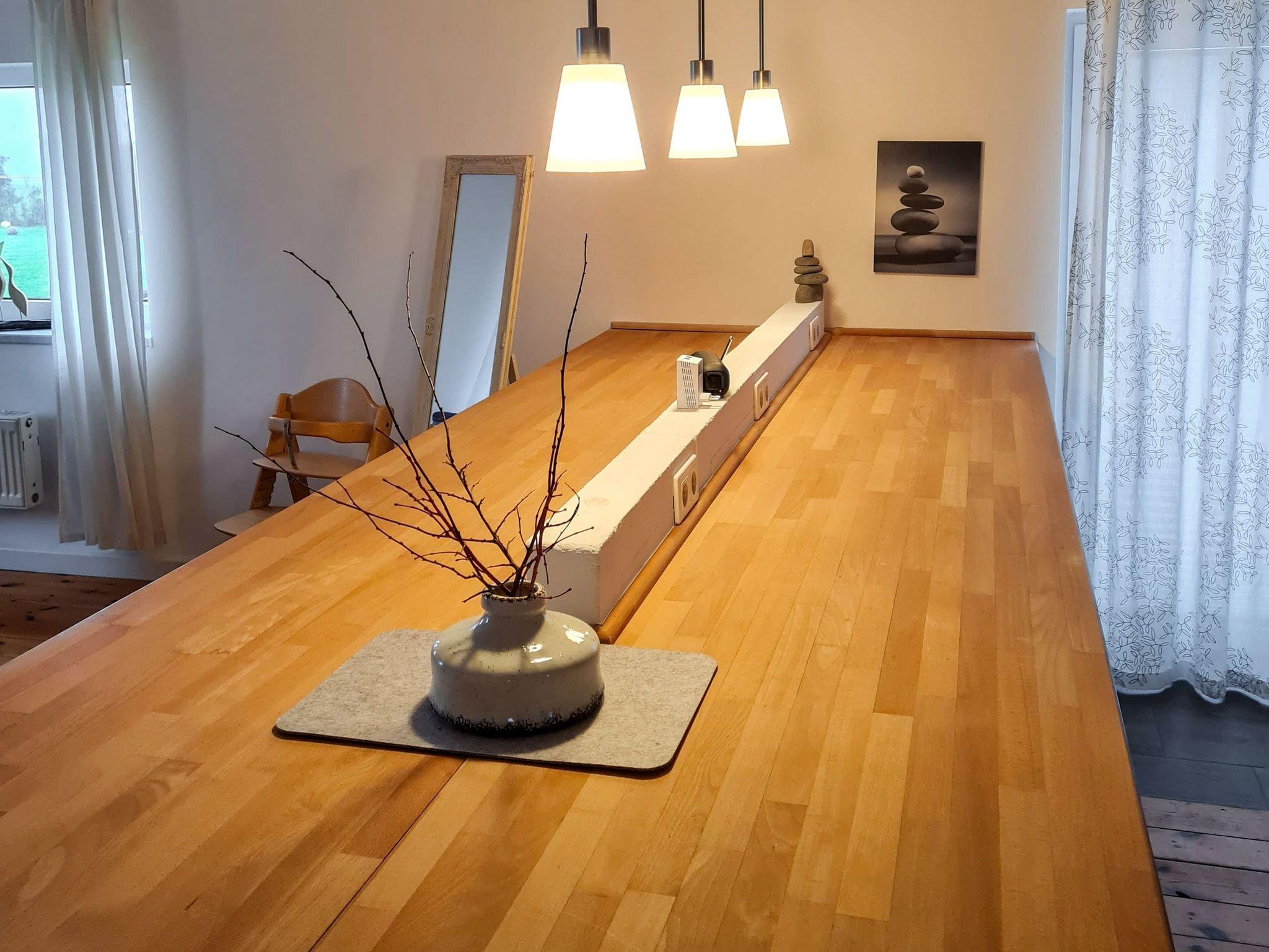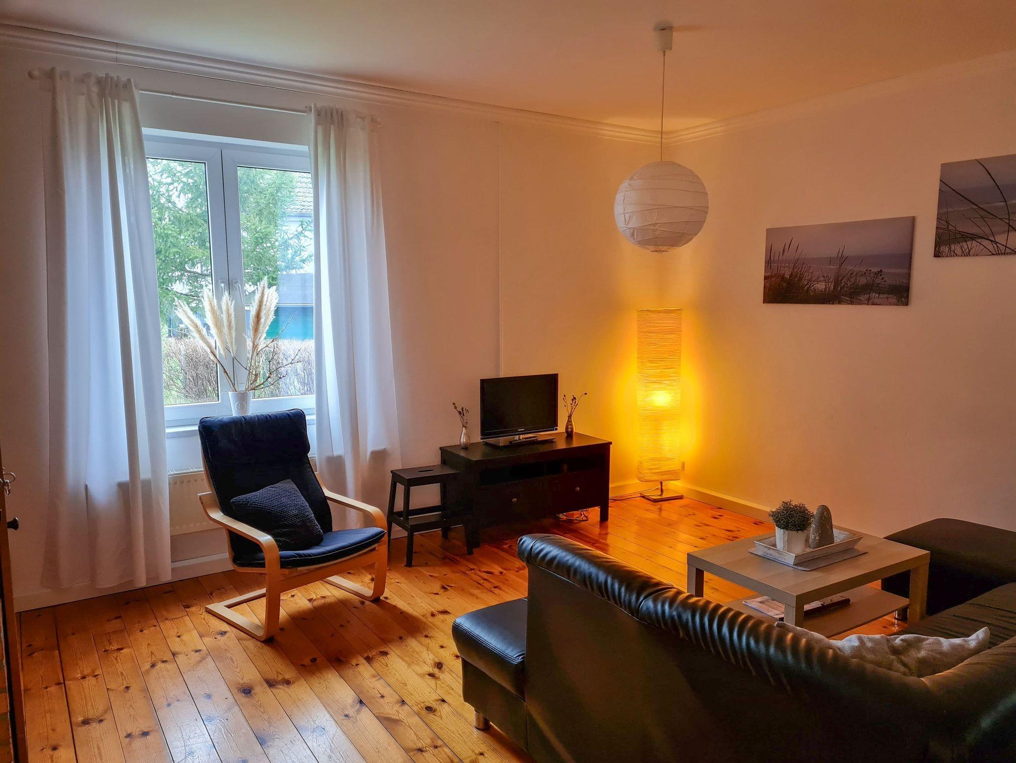 Das Ferienhaus Bollhagen befindet sich auf einem großzügigen Grundstück in Bartelshagen II, einem idyllischen Ortsteil der Gemeinde Saal, und bietet mit 80 m² Platz für 5 Personen. Von hier aus genießt du einen herrlichen Rundumblick und kannst die Ruhe der Natur in vollen Zügen auf dich wirken lassen. Das Ferienhaus überzeugt mit einer modernen, offenen Gestaltung und einem warmen Dielenfußboden, der für eine einladende Atmosphäre sorgt. Der große Wohnbereich mit Kamin und offener Küche ist das Herzstück des Hauses. Besonders charmant: Eines der beiden Schlafzimmer, ausgestattet mit einem Doppelbett, hat eine Glaswand, durch die du das gemütliche Flackern des Kamins genießen kannst. Im zweiten Schlafzimmer sorgt ein komfortables Doppelbett und ein Einzelbett für erholsamen Schlaf. Das Bad bietet sowohl eine Badewanne als auch eine Dusche, ideal für entspannte Wellnessmomente. Draußen erwartet dich eine große Terrasse, die in der Morgensonne erstrahlt perfekt für ein ausgiebiges Frühstück oder einen Grillabend. Der angrenzende Außenbereich mit seiner weiten Grünfläche bietet nicht nur viel Platz zum Spielen und Entspannen, sondern auch spektakuläre Naturerlebnisse: im Herbst kannst du hier das beeindruckende Schauspiel der Kranichwanderung beobachten. Mit etwas Glück siehst du auch Dammwild, Rehe, Seeadler und andere Wildtiere. Für dein Fahrrad steht eine Garage bereit. WLAN und ein Parkplatz direkt am Haus machen deinen Aufenthalt komplett. Dieses Ferienhaus ist der ideale Ort, um dem Alltag zu entfliehen und die Schönheit der Natur in vollen Zügen zu genießen.