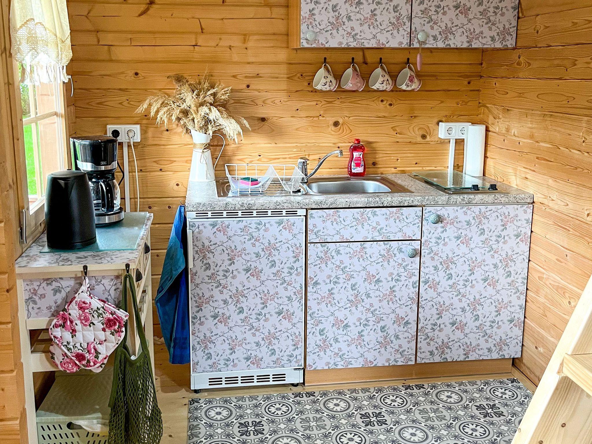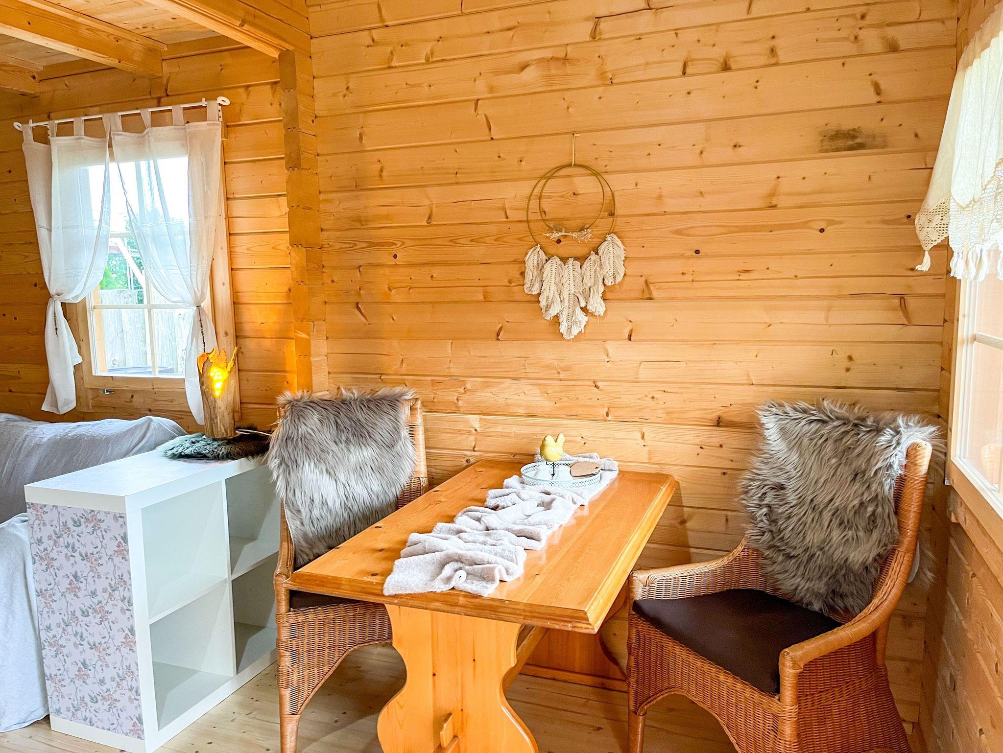 Das Tiny Häuschen Land-Idyll in Bartelshagen 2 bietet auf 35 m² alles, was man für einen gemütlichen Sommerurlaub braucht - kompakt, durchdacht und liebevoll eingerichtet. Es ist ideal für alle, die offen wohnen, die Nähe zur Natur genießen und es unkompliziert mögen. Der Wohnraum ist als offener Bereich gestaltet und vereint auf charmante Weise Schlaf-, Wohn- und Kochbereich. Hier findest du ein bequemes Schlafsofa (140x200), das tagsüber als Sofa dient und sich abends in einen gemütlichen Schlafplatz verwandeln lässt. Ein Fernseher und ein kleiner Esstisch schaffen eine angenehme Wohnatmosphäre auf kleinem Raum. Die offene Pantry-Küche ist mit allem ausgestattet, was du zum Kochen brauchst - kompakt, aber funktional. Das Bad verfügt über eine ebenerdige Dusche, ein Waschbecken und ein WC. Über eine Leiter erreichst du den Schlafboden unter dem Dach, auf dem ein Doppelbett (140x200) auf dich wartet. Der Bereich ist niedrig, aber kuschelig - ideal zum Zurückziehen, Lesen oder Schlafen mit Blick in die Dachbalken. Draußen wartet eine eigene Terrasse mit Sitzgelegenheit und Grill auf dich. Der Garten rund ums Tiny House kann mitgenutzt werden und bietet Raum für entspannte Stunden im Grünen, Frühstück in der Morgensonne oder einen Abend unterm Sternenhimmel. Auch ein Hund darf gern mitreisen und vielleicht findet er auf dem gemeinsam genutzten Grundstück sogar einen Spielkameraden aus der benachbarten Ferienwohnung im Mehrfamilienhaus.