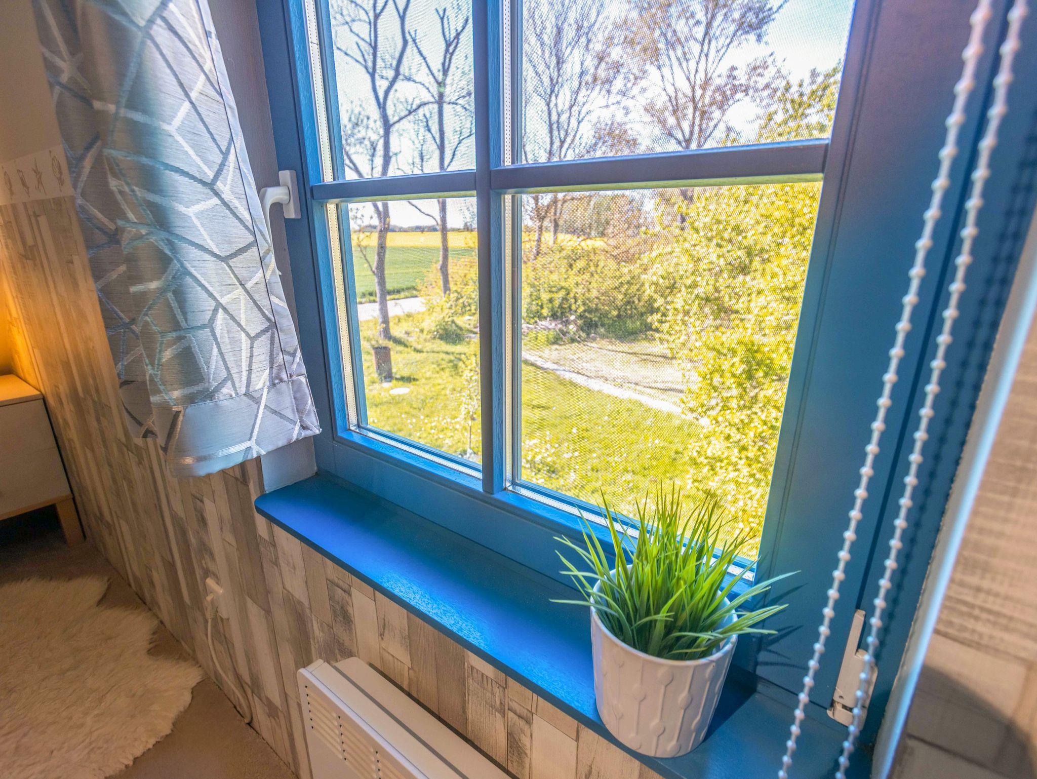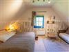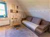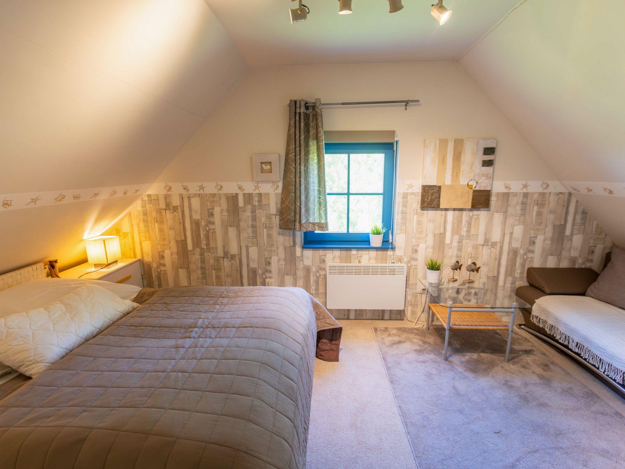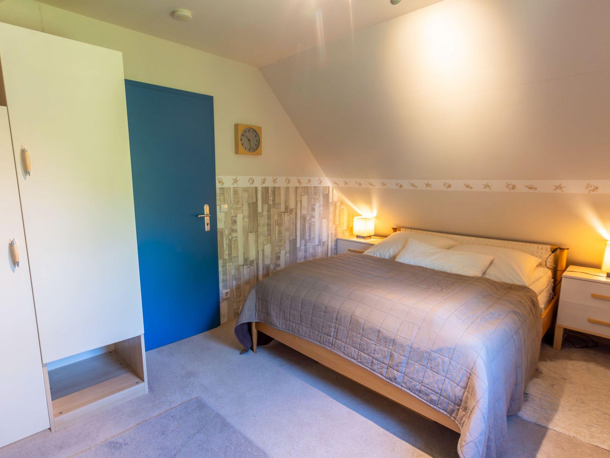 Ebenfalls im Erdgeschoss liegt das moderne Badezimmer mit ebenerdiger Dusche, WC, Waschbecken, Fußbodenheizung und einer kleinen Sauna. Ein Hauswirtschaftsraum ergänzt das Raumangebot mit Waschmaschine, Trockner und vielen nützlichen Dingen wie Wäscheklammern, Verlängerungskabel, Bügelbrett oder sogar einem Boule-Spiel. Über eine bequeme Wendeltreppe gelangst du in das Obergeschoss, wo dich drei individuell gestaltete Schlafzimmer und ein separates Gäste-WC erwarten. Das Sandzimmer ist mit einem Doppelbett (160x200, getrennte Matratzen) und einem zusätzlichen Schlafsofa (80x200) ausgestattet. Im Segelzimmer findest du ein Doppelbett (160x200, durchgehende Matratze) sowie ein weiteres Schlafsofa (80x200). Das Marinezimmer am Ende des Flurs ist etwas kompakter, aber liebevoll eingerichtet, mit einem Doppelbett (180x200, getrennte Matratzen).
