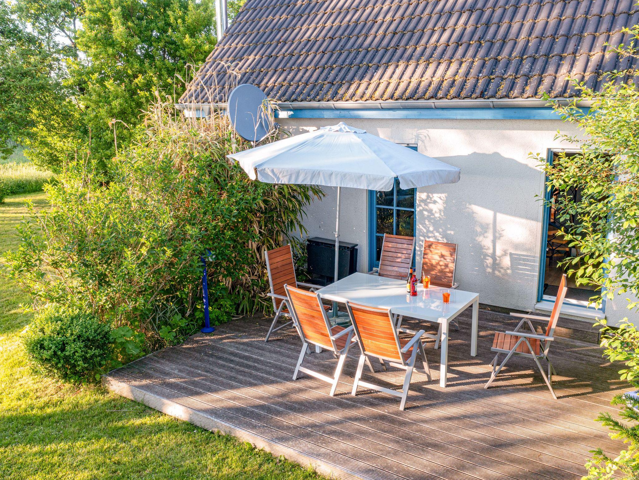 Die Terrasse mit gemütlichen Sitzmöbeln und Grill lädt zu entspannten Stunden im Freien ein, während der weitläufige Garten rund ums Haus viel Raum zum Sonnen, Spielen oder einfach Abschalten bietet. Umgeben von Hecken und ländlicher Ruhe ist hier schnell der Alltag vergessen.