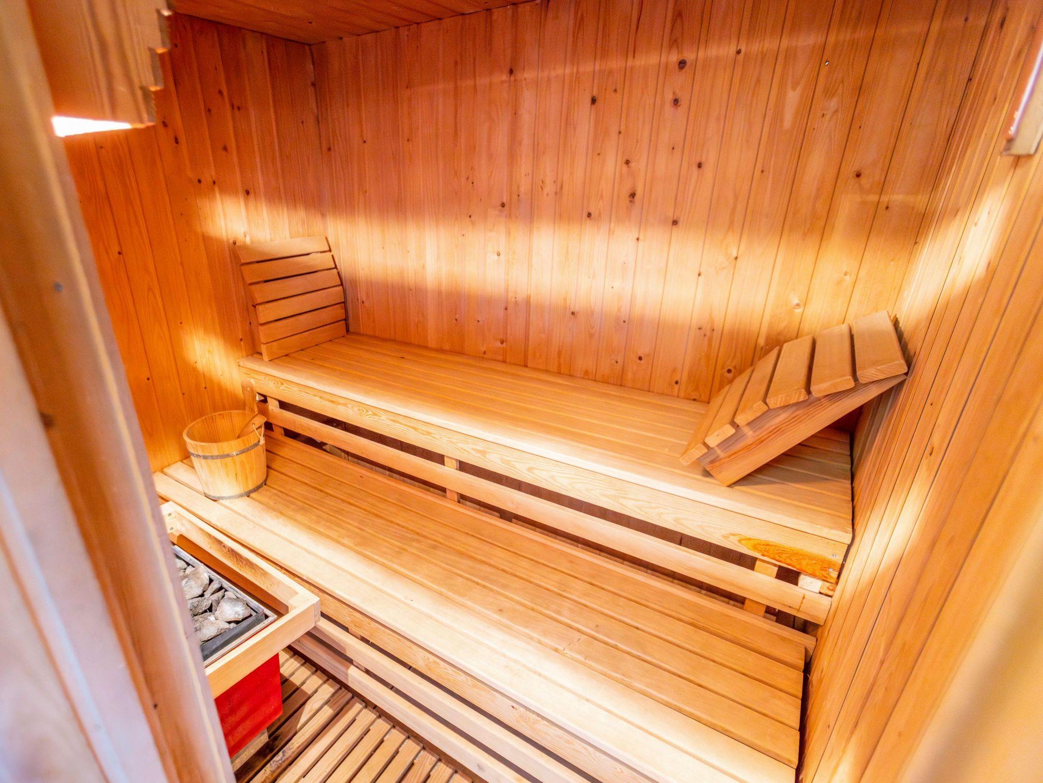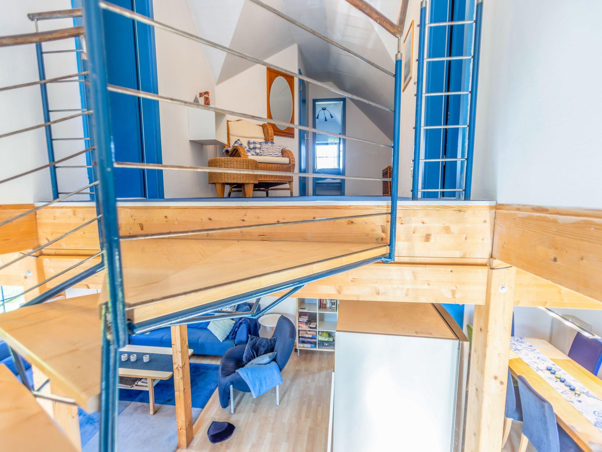 Das Bad im Erdgeschoss verfügt über eine ebenerdige Dusche, WC, Waschbecken, Fußbodenheizung und eine kleine Sauna, ideal zum Entspannen nach einem Ausflug. Eine bequeme Wendeltreppe führt ins Obergeschoss, wo drei individuell gestaltete Schlafzimmer und ein zusätzliches Gäste-WC auf dich warten.