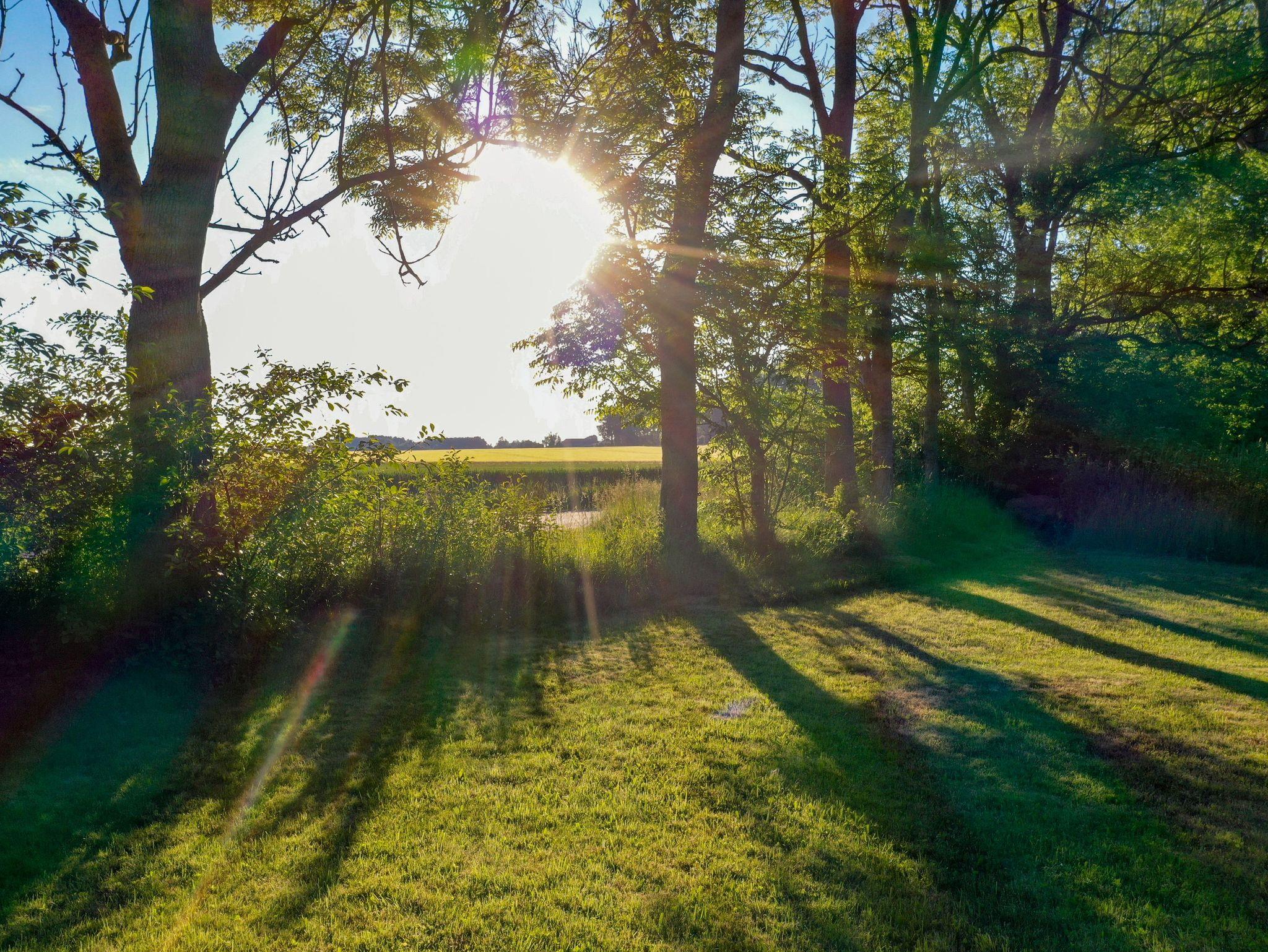 Auch draußen lädt das Tüdelnest zum Verweilen ein: Auf der Terrasse findest du Gartenmöbel und einen Grill, der perfekte Platz, um die Abendsonne zu genießen. Der weitläufige Garten darf selbstverständlich mitgenutzt werden, ob zum Sonnen, Spielen oder einfach zum Entspannen. Das Grundstück ist nicht umzäunt, sondern durch eine Hecke optisch abgegrenzt. PKWs können direkt vor dem Haus auf der Grünfläche parken.