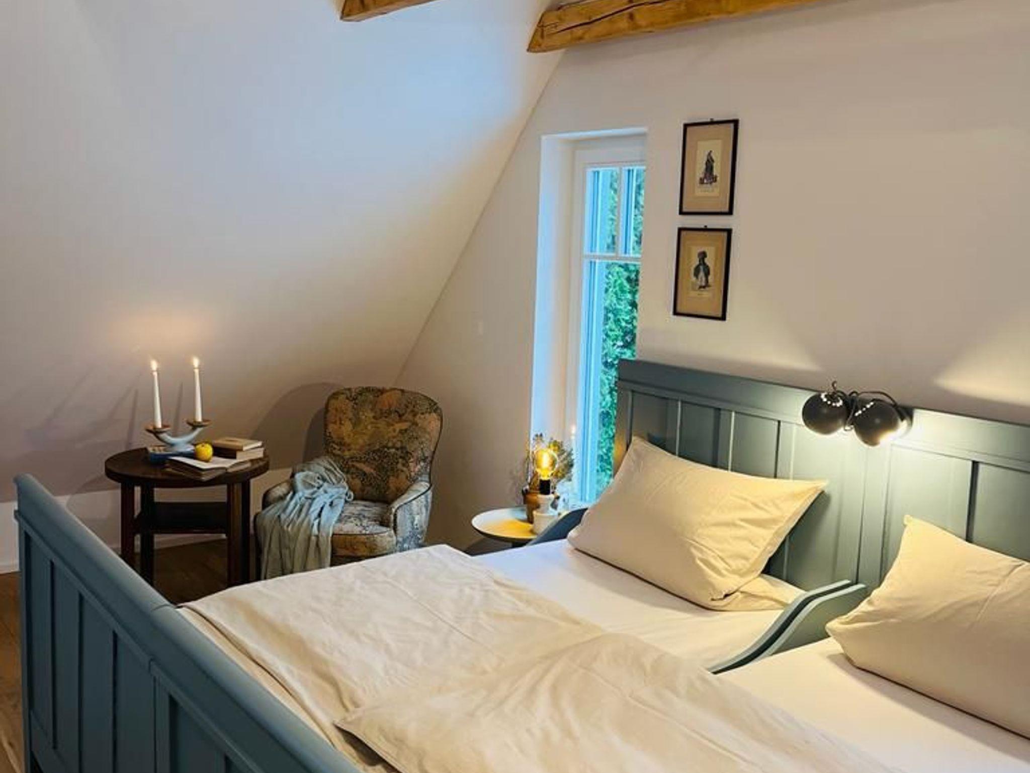 Das Haus bietet Platz für bis zu sechs Personen mit drei Schlafzimmern im Obergeschoss. Jedes der drei Doppelzimmer verfügt über ein Doppelbett (2x 1,60m x 2,00m; 1x 1,80m x 2,00m).
