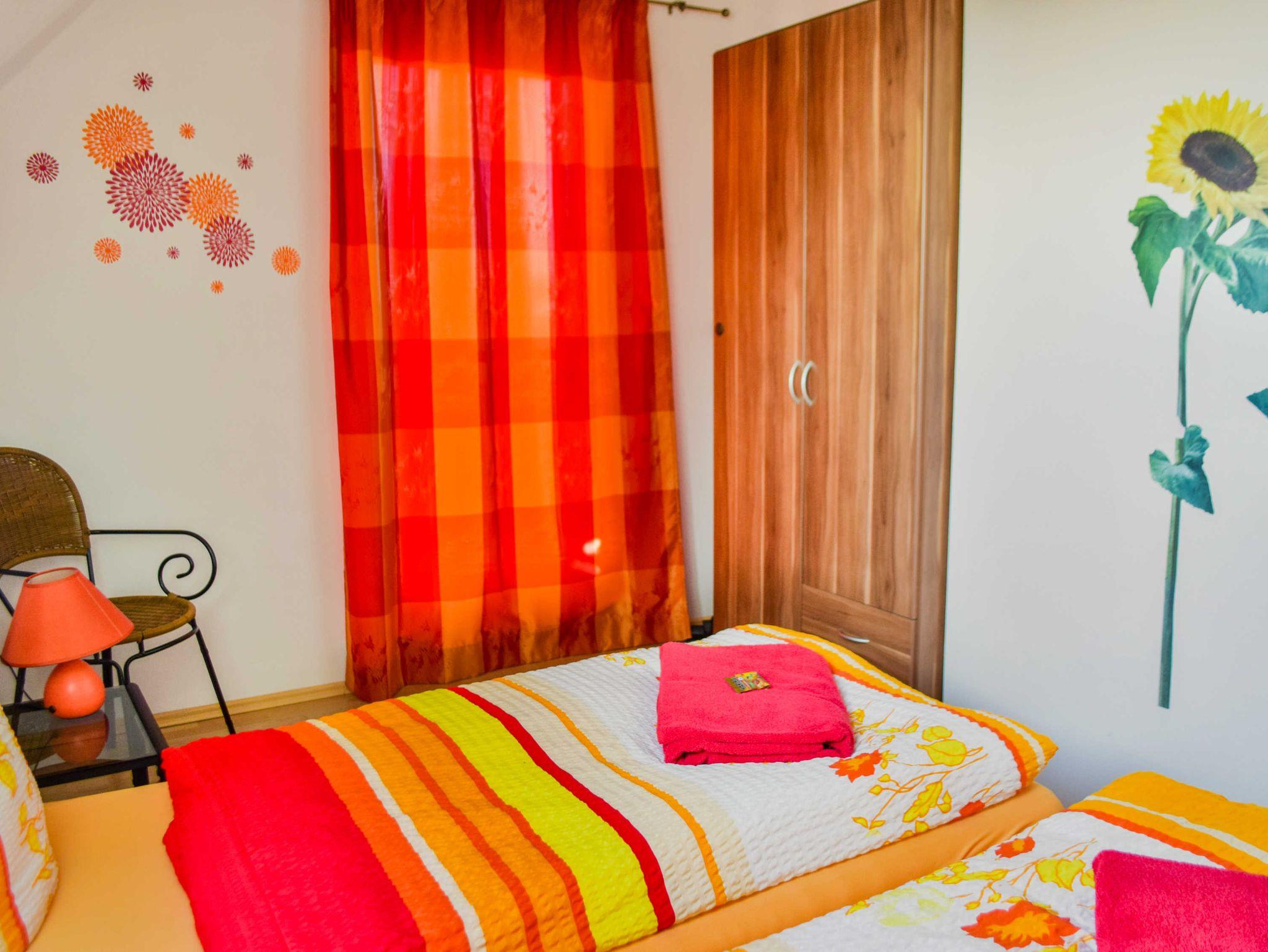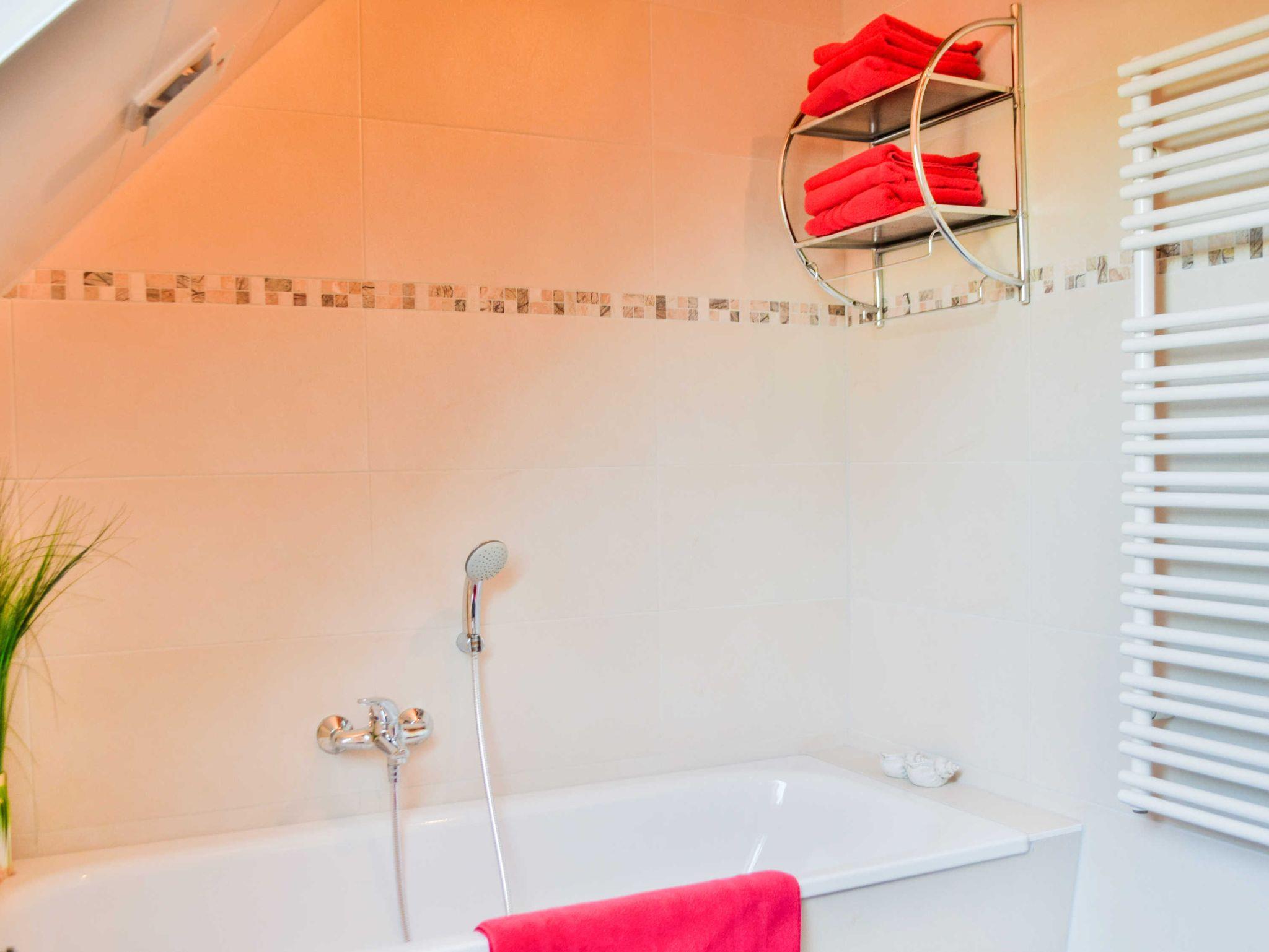 Zur geschmackvoll und komplett ausgestatteten Doppelhaushälfte gehört ein gemütliches und helles Wohnzimmer mit Kamin und offener Einbauküche, ein Bad mit WC, Dusche und Sauna und ein Bad mit WC und Badewanne, elektrische Rolläden im Erdgeschoß, Insektenschutzgittern sowie 2 gemütliche Schlafzimmer für 4 Personen und 1 Schlafzimmer mit Schlafboden für 2 Personen. Im Außenbereich steht Ihnen eine schöne große Terrasse mit Gartenmöbeln, Sonnenliegen auf der angeschlossener kleiner Liegewiese, sowie ein Garten zur Verfügung.