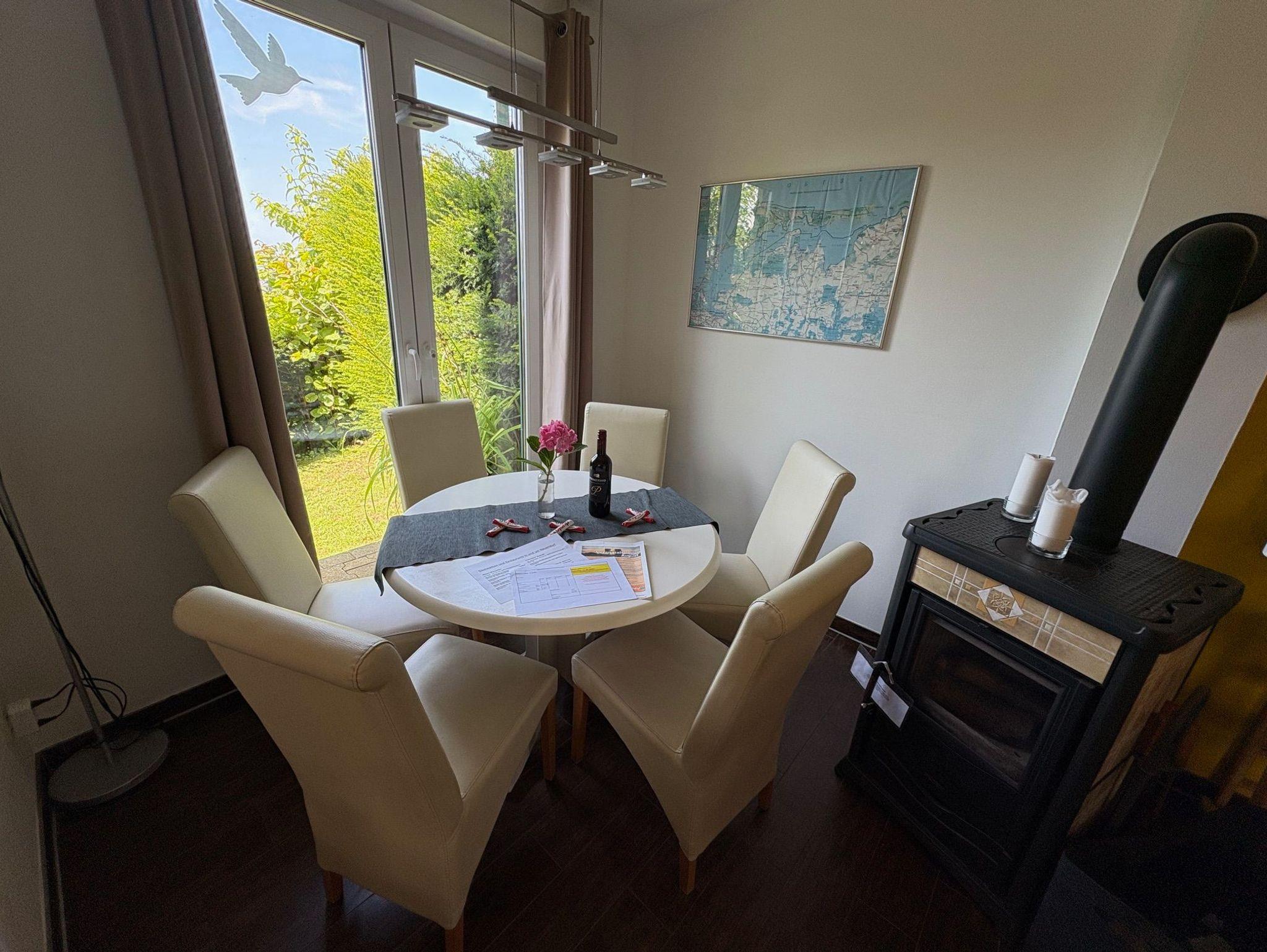 ine hochwertig ( **** DTV ) ausgestattete Doppelhaushälfte ( Baujahr 2010 ) - 85qm - für 6 (2) Personen mit 3 Schlafzimmern, 2 Bädern, Sauna und Kamin. Das Haus hat Wasserblick und verfügt über 2 Terrassen. Es stehen 3 separate Schlafzimmer zur Verfügung, wovon 2 SZ mit Doppelbetten und 1 SZ mit einem Doppelbett im Alkoven (Schlafboden) ausgestattet ist. Die beiden Bäder sind mit Toilette und Waschbecken sowie 1x mit Dusche und 1x mit Wanne ausgestattet. Von einem Bad hat man außerdem den Zugang zur Sauna. Das Haus ist ideal für Angler, Surfer, Segler, Kiter, Radfahrer und Naturfreunde. Weiterhin können Fahrräder kostenlos genutzt werden und ein Ruderboot kostenpflichtig gemietet werden. Der Naturstrand befindet sich in 50m Entfernung. WLAN ist vorhanden.Die Gemeinde erhebt eine Kurabgabe pro Person/ Nacht.