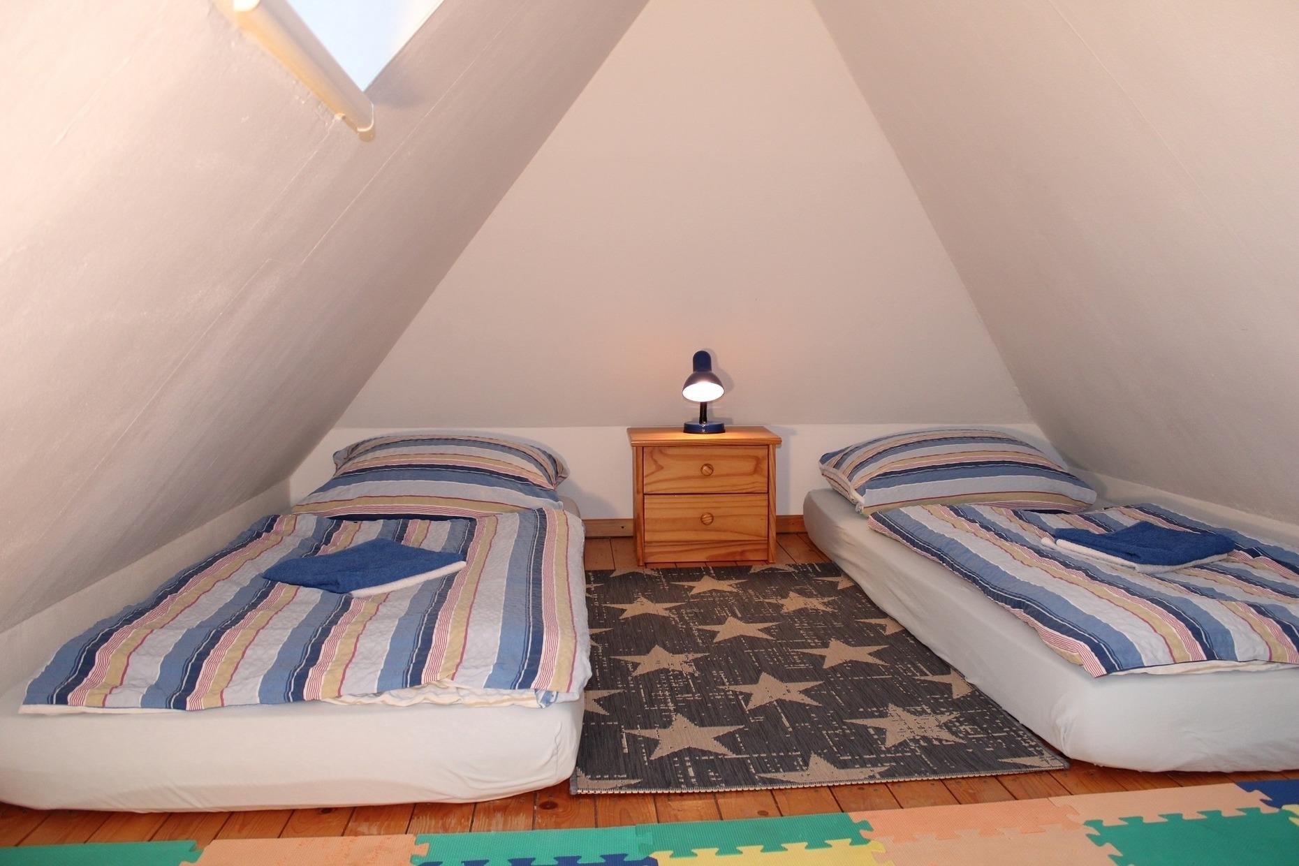 Die Obergeschosswohnung bieten für den Nachwuchs ab ca. 6 Jahren eine besondere Attraktion. Hier findet die Aufbettung auf einem kleinen Schlafboden statt. Zur Not finden hier auch 2 Erwachsene ein Nachtquartier.