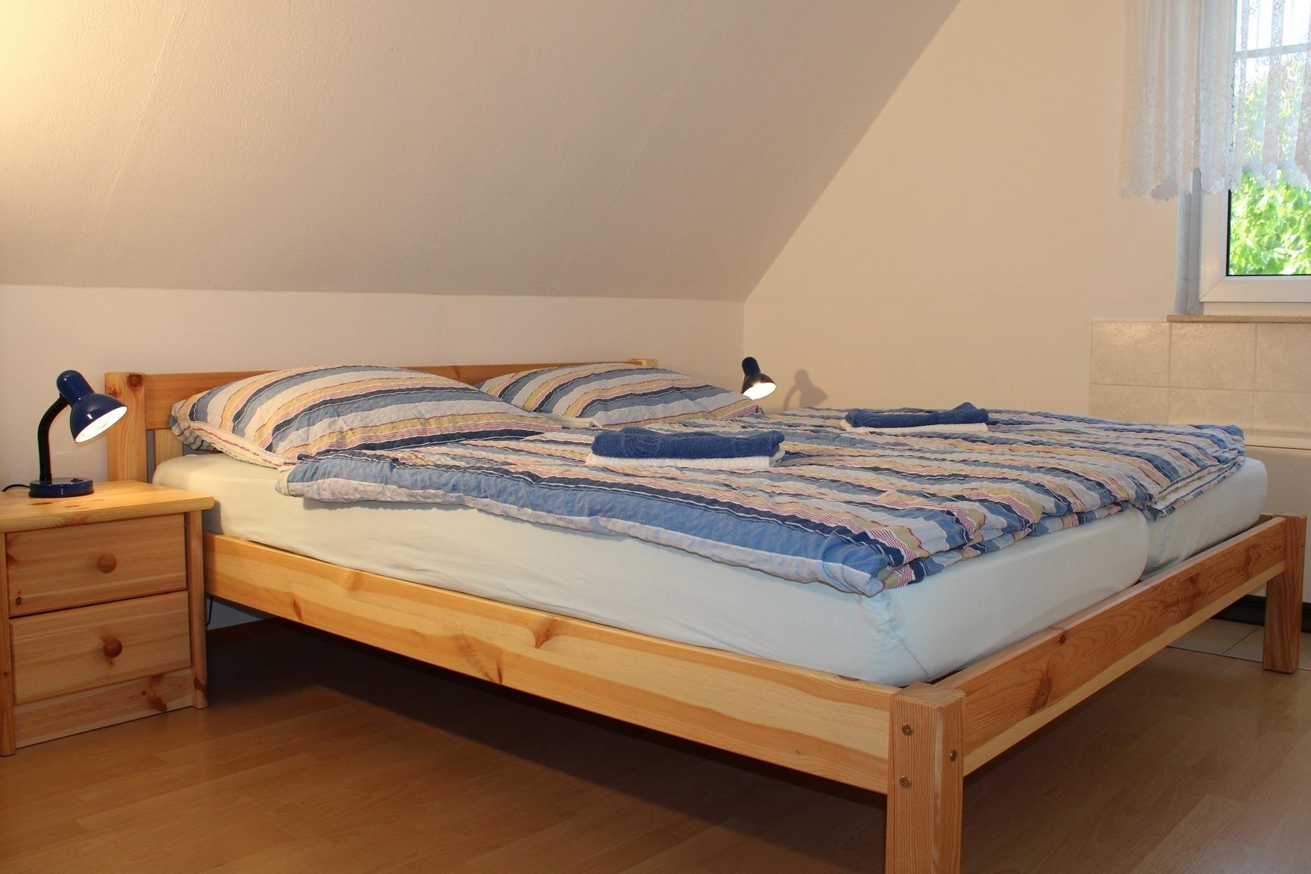Die Ferienwohnung "blau" ist 35 m² groß verfügt über ein separates Schlafzimmer mit Doppelbett. Ihrer Körperpflege können Sie in einem Bad mit WC und Badewanne nachgehen. Alle Wohnungen haben Sat-TV, Telefon, W-Lan-Empfang und Nachtspeicherheizung.