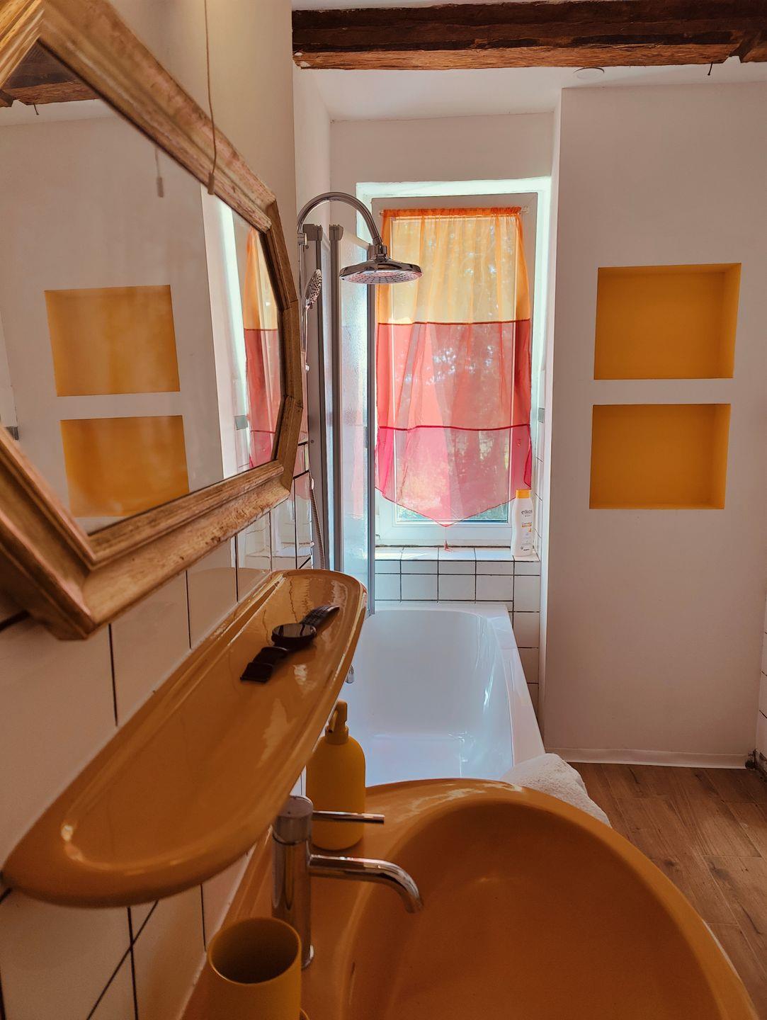 Die Kombüse war früher die Küche des Hofes. Heute ist sie eine Ferienwohnung mit Herz, Historie und Patina. Originalfliesen von 1876, gemütliche Wohnküche mit Schlafcouch, Bad mit Wanne – nichts ist neu, aber alles echt. Ideal für alle, die lieber mit offenen Augen als mit Filter reisen. Check-in digital, Gäste-Infos in der App, WLAN inklusive.