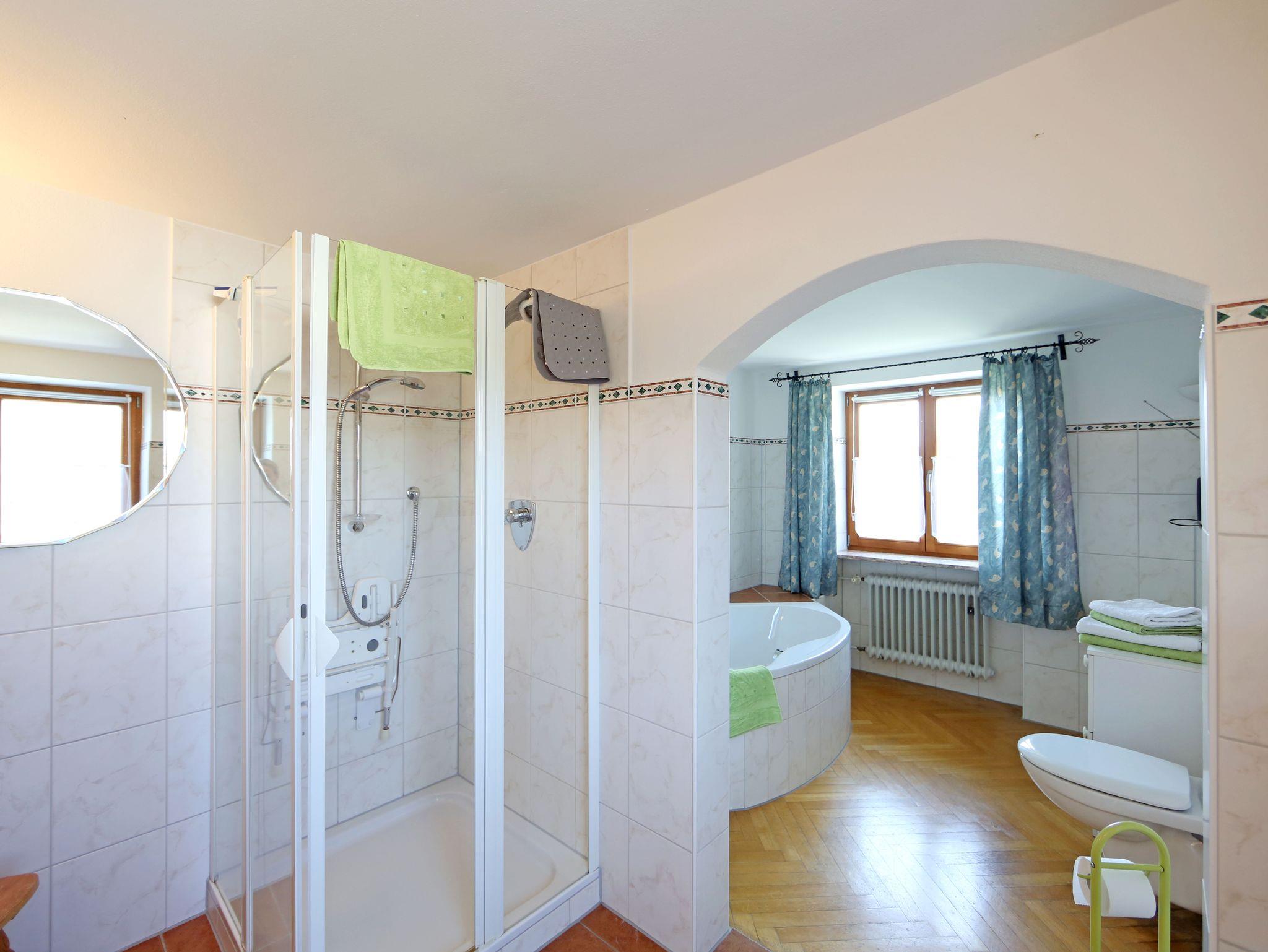 Die großzügige, gemütliche Ferienwohnung mit Parkettboden, befindet sich im ersten Stock eines Zweifamilienhauses und hat einen eigenen Eingang. Von der Küche mit Ostbalkon aus haben Sie einen wunderschönen Ausblick auf den Haunsberg bei Oberndorf/Salzburg. Vom Wohnzimmer aus sehen Sie die Berchtesgadener Alpen. Für Ihr Auto befindet sich ein Carport am Haus. Ganz in der Nähe (4 km) finden Sie den Abtsdorfer See mit schönen Badeplätzen, die Städte Laufen und Oberndorf (7 km) wunderschön an der Salzach gelegen. Salzburg mit seinem Kulturangebot und Sehenswürdigkeiten ist nur ca. 10 km entfernt und vom Freilassinger Bahnhof (7 km) auch mit der S-Bahn gut erreichbar. Zu jeder Jahreszeit finden Sie hier bei uns im Rupertiwinkel, sowie im angrenzenden Berchtesgadener Land, dem Chiemgau und dem Salzburger Land zahlreiche schöne Ausflugsmöglichkeiten. Auch einige nahegelegene Skigebiete sind einfach und schnell erreichbar, und beim „nach Hause kommen“ können Sie den Schwedenofen im Wohnzimmer anheizen und mit einem Glas Punsch, Wein oder Schönramer Bier, den Tag ausklingen lassen.In unmittelbarer Nachbarschaft finden Sie den Paulbauernhof mit eigener Käserei und Hofladen mit Produkten aus der Region. In Surheim ca. 2 km entfernt finden Sie einen hervorragend sortierten Edeka-Markt, ein Gasthäuser, Bäcker und Friseur.