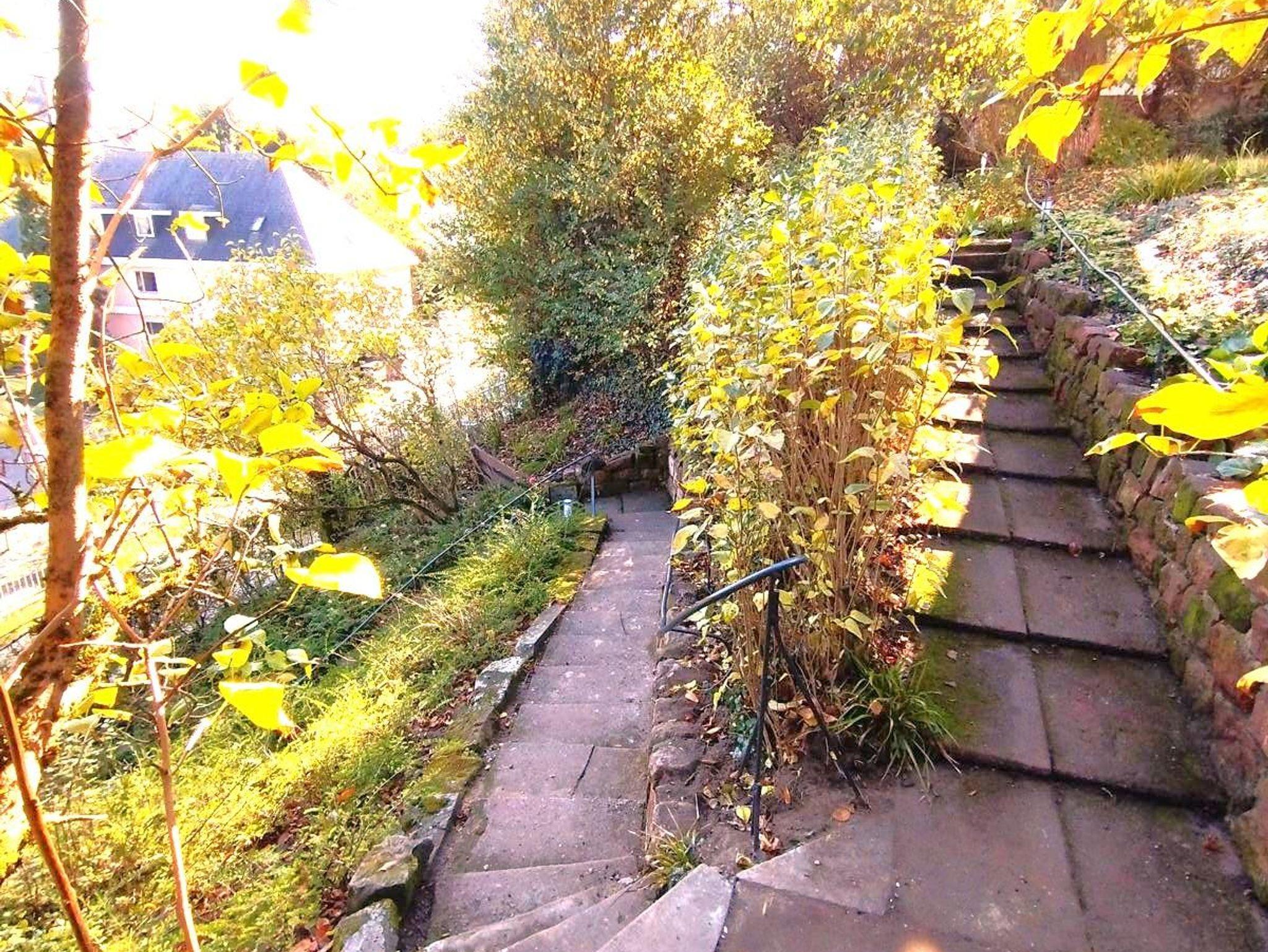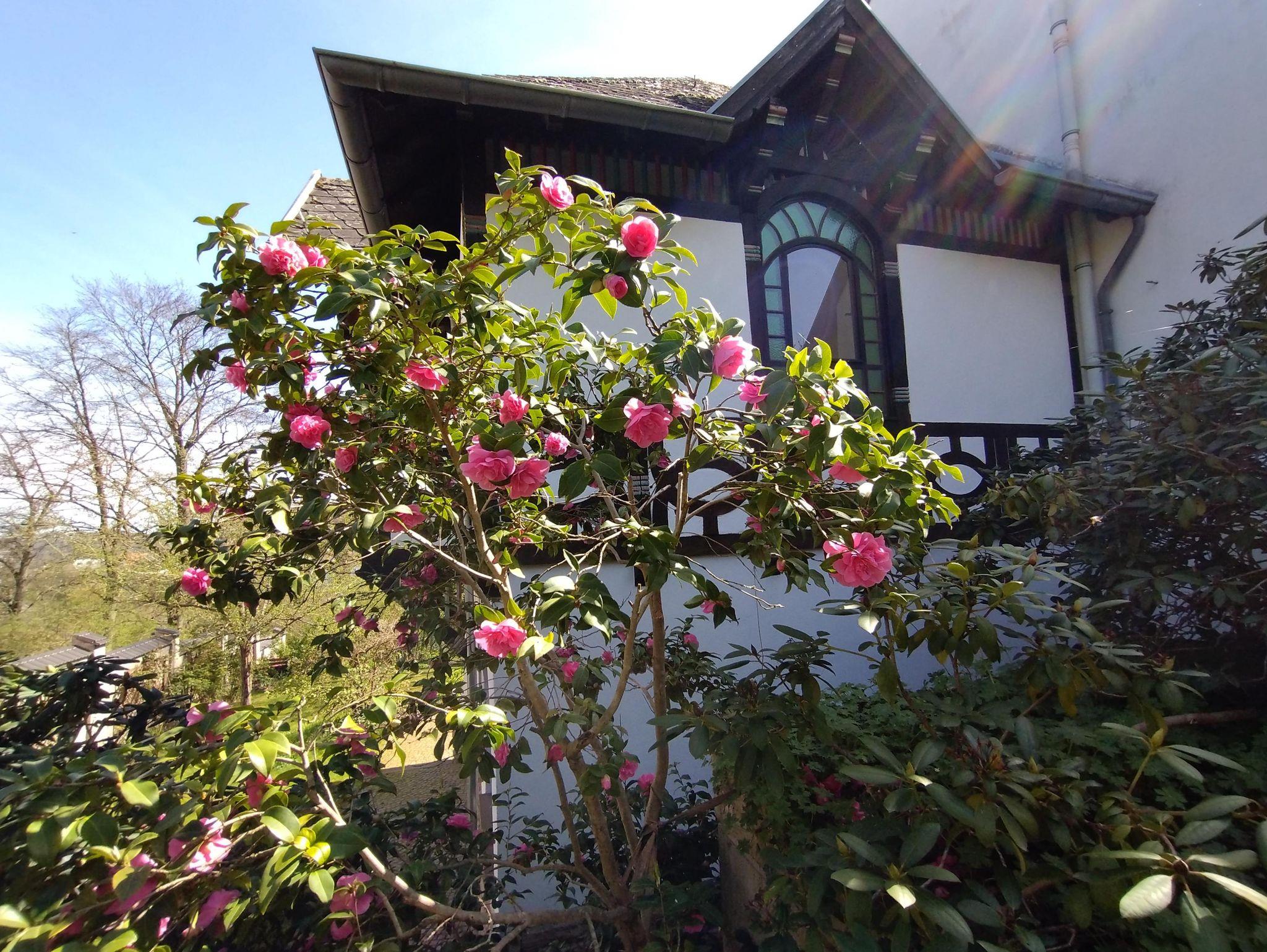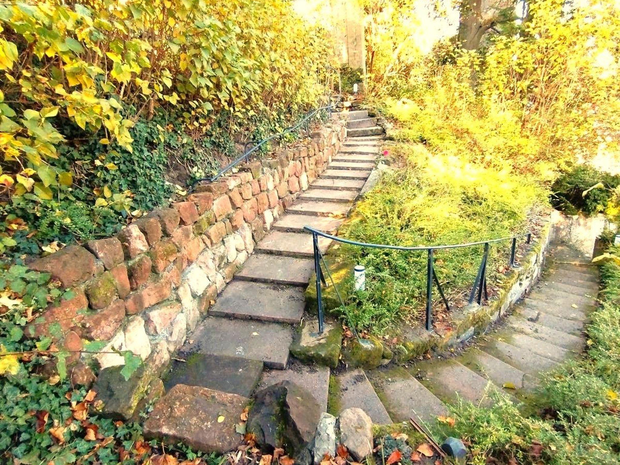 Vor dem Haus sind unentgeltliche Parkplätze vorhanden. Ein schöner Stadtblick sowie ein Garten mit Terrasse entschädigen für ein paar Treppen, die zum Haus genommen werden müssen. Im Gartenhaus stehen Stühle und Tisch für die Terrassennutzung bereit.