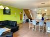 Die 3-Zimmer-Wohnung für 6 Personen erstreckt sich über zwei Etagen mit Wohnbereich, offener Küche und Bad im Erdgeschoß sowie den beiden Schlafräumen im 1. OG.