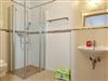 Das Bad bietet eine ebenerdige Dusche.
